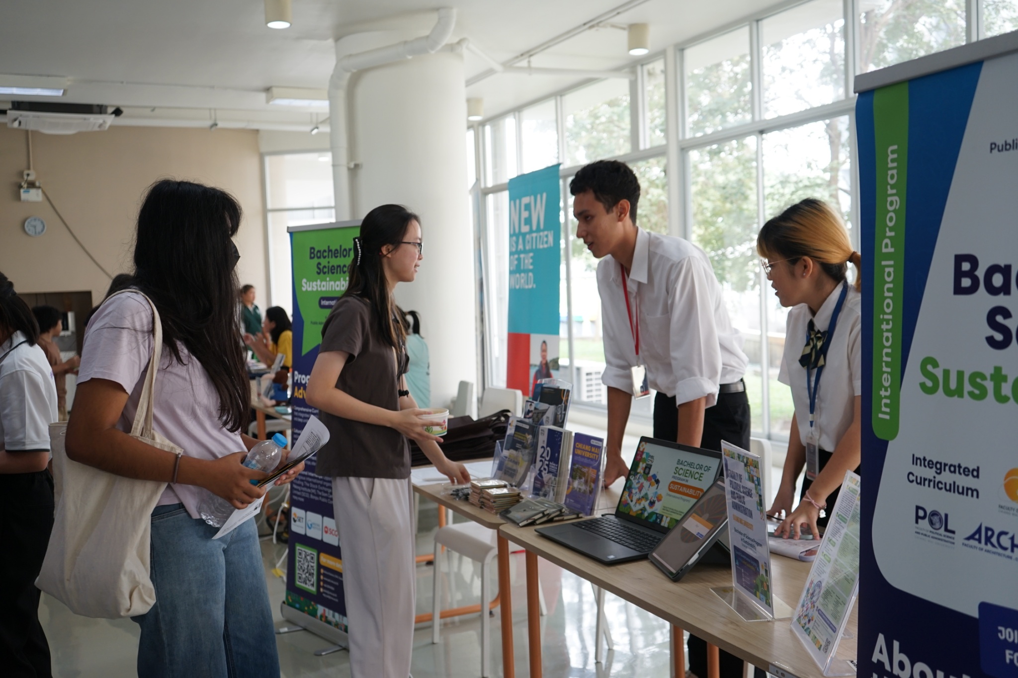 (หลักสูตรนานาชาติ)" เพื่อแนะแนวทางการศึกษาต่อแก่นักเรียนระดับมัธยมศึกษาตอนปลาย (Year 10–13) ให้เข้าใจถึงแนวคิดการเรียนรู้ด้านความยั่งยืน และโอกาสการทำงานในอนาคต