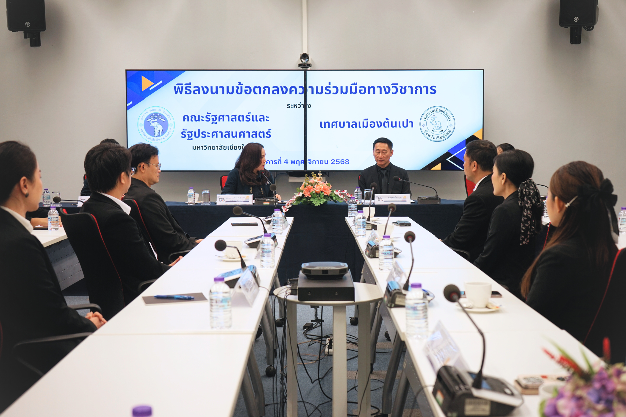 ในวันที่ 4 พฤศจิกายน 2568 คณะรัฐศาสตร์และรัฐประศาสนศาสตร์ มหาวิทยาลัยเชียงใหม่ ได้ร่วมลงนามบันทึกความเข้าใจ (MOU) กับ เทศบาลเมืองต้นเปาจังหวัดเชียงใหม่ ณ ห้องประชุมยุทธศาสตร์ อาคาร 50 ปี คณะรัฐศาสตร์ฯ โดยมีวัตถุประสงค์ในการส่งเสริมความร่วมมือทางวิชาการและการพัฒนาชุมชนอย่างยั่งยืน