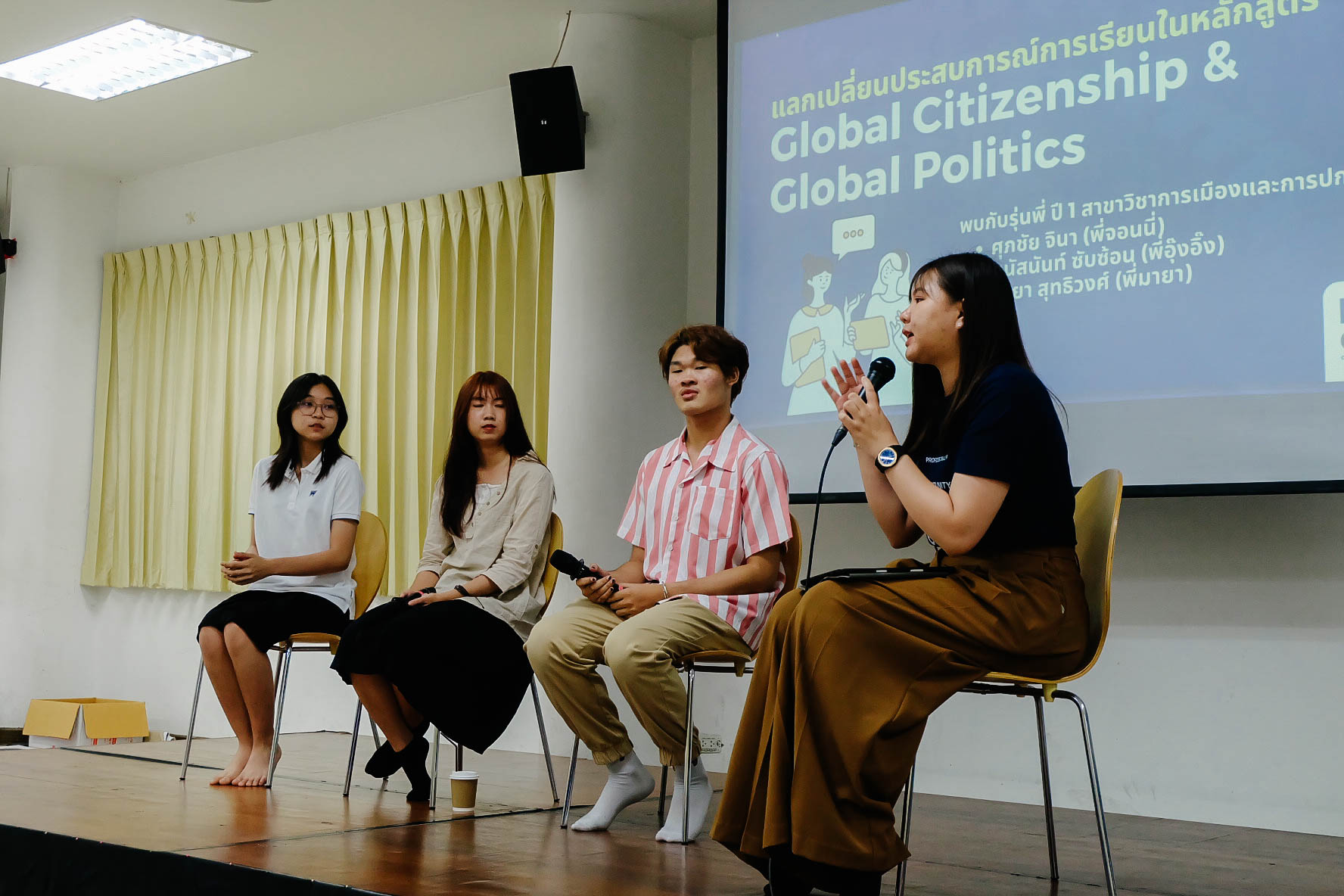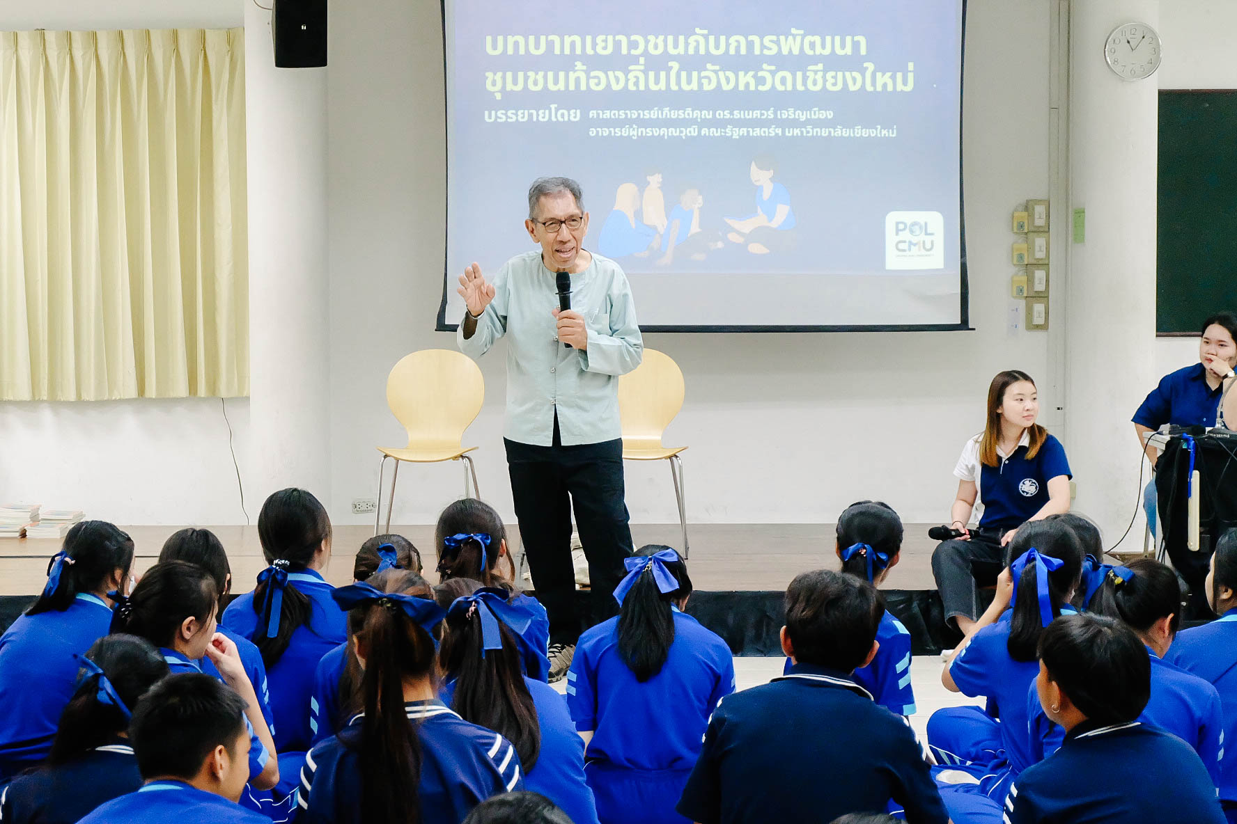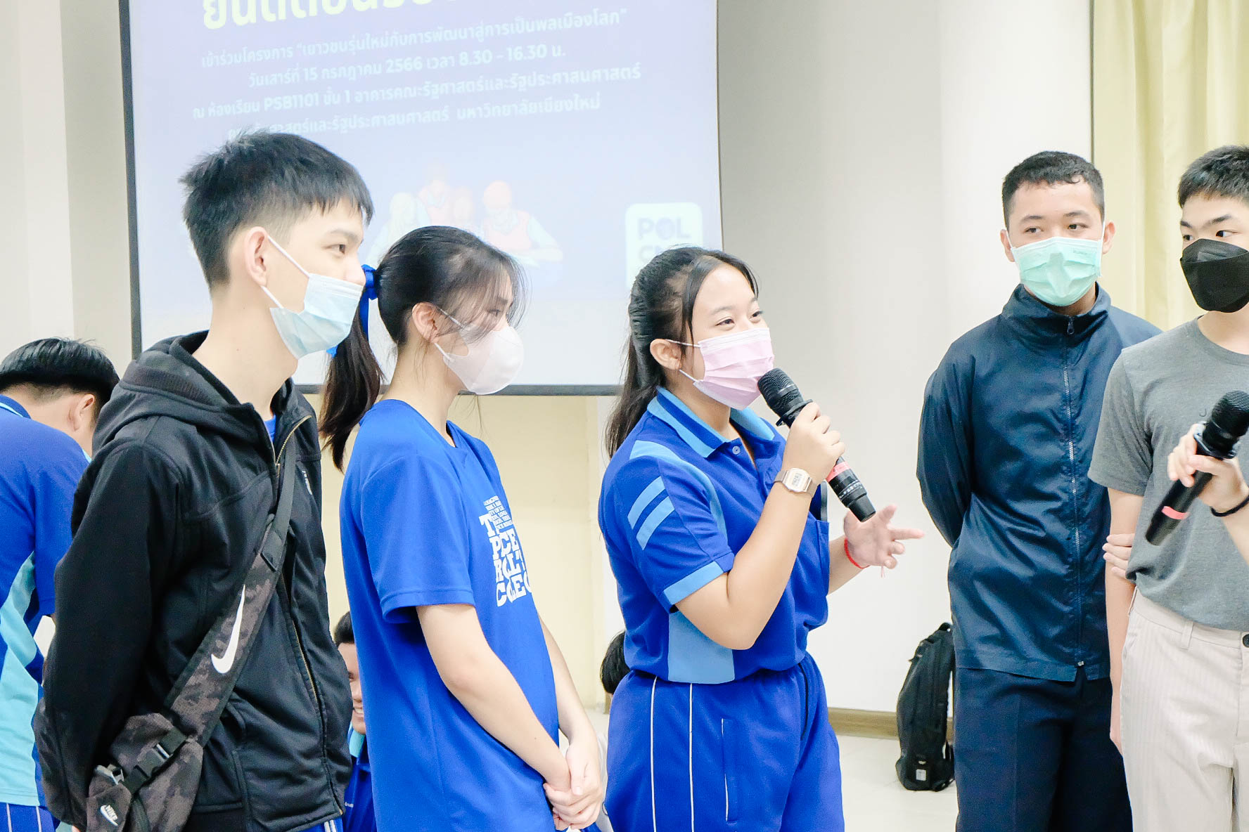 วันที่ 15 กรกฎาคม 2566 เวลา 8.30 - 16.30 น. ศูนย์นวัตกรรมรัฐศาสตร์ คณะรัฐศาสตร์ฯ ได้จัดโครงการ "เยาวชนรุ่นใหม่กับการพัฒนาสู่การเป็นพลเมืองโลก" แก่นักเรียนจำนวน 4 โรงเรียนภายใต้ข้อตกลงความร่วมมือทางวิชาการฯ ได้แก่ โรงเรียนแม่ริมวิทยาคม โรงเรียนสันป่าตองวิทยาคม โรงเรียนมงฟอร์ตวิทยาลัย และโรงเรียนปรินส์รอยแยลส์วิทยาลัย ซึ่งโครงการดังกล่าวมีวัตถุประสงค์เพื่อส่งเสริมการบรรลุวัตถุประสงค์ของการจัดทำบันทึกข้อตกลงความร่วมมือทางวิชาการฯ ระหว่างคณะรัฐศาสตร์ฯ มหาวิทยาลัยเชียงใหม่, โรงเรียนสันป่าตองวิทยาคม โรงเรียนแม่ริมวิทยาคม, โรงเรียนปรินส์รอยแยลส์วิทยาลัย และโรงเรียนมงฟอร์ตวิทยาลัย เพื่อสร้างความสัมพันธ์และสร้างเครือข่ายระหว่างนักเรียนและครูในโรงเรียนจังหวัดเชียงใหม่ และคณาจารย์ นักศึกษาคณะรัฐศาสตร์ฯ มหาวิทยาลัยเชียงใหม่ และสร้างบรรยากาศการเรียนรู้ด้านรัฐศาสตร์และการทำกิจกรรมที่เสริมสร้างทักษะการคิดวิเคราะห์และความคิดสร้างสรรค์ต่าง ๆ อีกด้วย ณ ห้องเรียน PSB1101 ชั้น 1 คณะรัฐศาสตร์ฯ มหาวิทยาลัยเชียงใหม่