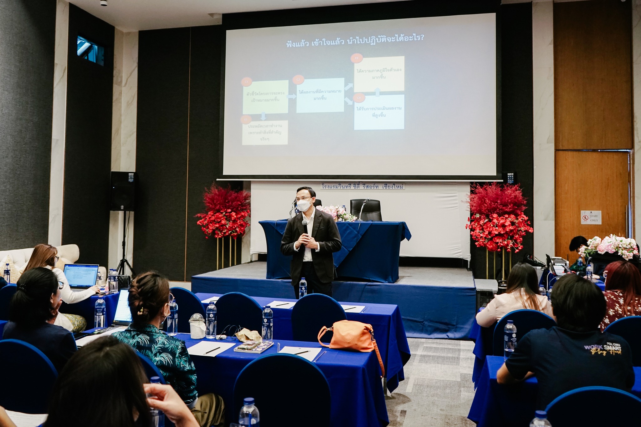 คณะรัฐศาสตร์และรัฐประศาสนศาสตร์ จัดโครงการอบรมเชิงปฏิบัติการ "การเขียนโครงการและการกำหนดตัวชี้วัดที่มุ่งสู่ผลลัพธ์ในการพัฒนาองค์กรสู่ความเป็นเลิศ" สำหรับบุคลากรสายสนับสนุนวิชาการ เพื่อให้ผู้เข้ารับการฝึกอบรมเข้าใจในหลักการการเขียนโครงการได้อย่างถูกต้องตอบสนองต่อพันธกิจและเป้าหมายสำคัญของคณะฯ รวมถึงฝึกทักษะจากการฝึกปฏิบัติจริง และสามารถนำความรู้ที่ได้รับไปประยุกต์ใช้ในการทำงานได้อย่างมีประสิทธิภาพ โดยมี ผู้ช่วยศาสตราจารย์ ดร.อลงกรณ์ คูตระกูล รองคณบดีฝ่ายบริหาร และคุณปวีณา ธูปทอง เลขานุการคณะรัฐศาสตร์และรัฐประศาสนศาสตร์ เป็นวิทยากรบรรยาย เมื่อวันที่ 30 ตุลาคม 2566 ณ โรงแรม วินทรี ซิตี้ รีสอร์ต เชียงใหม่
