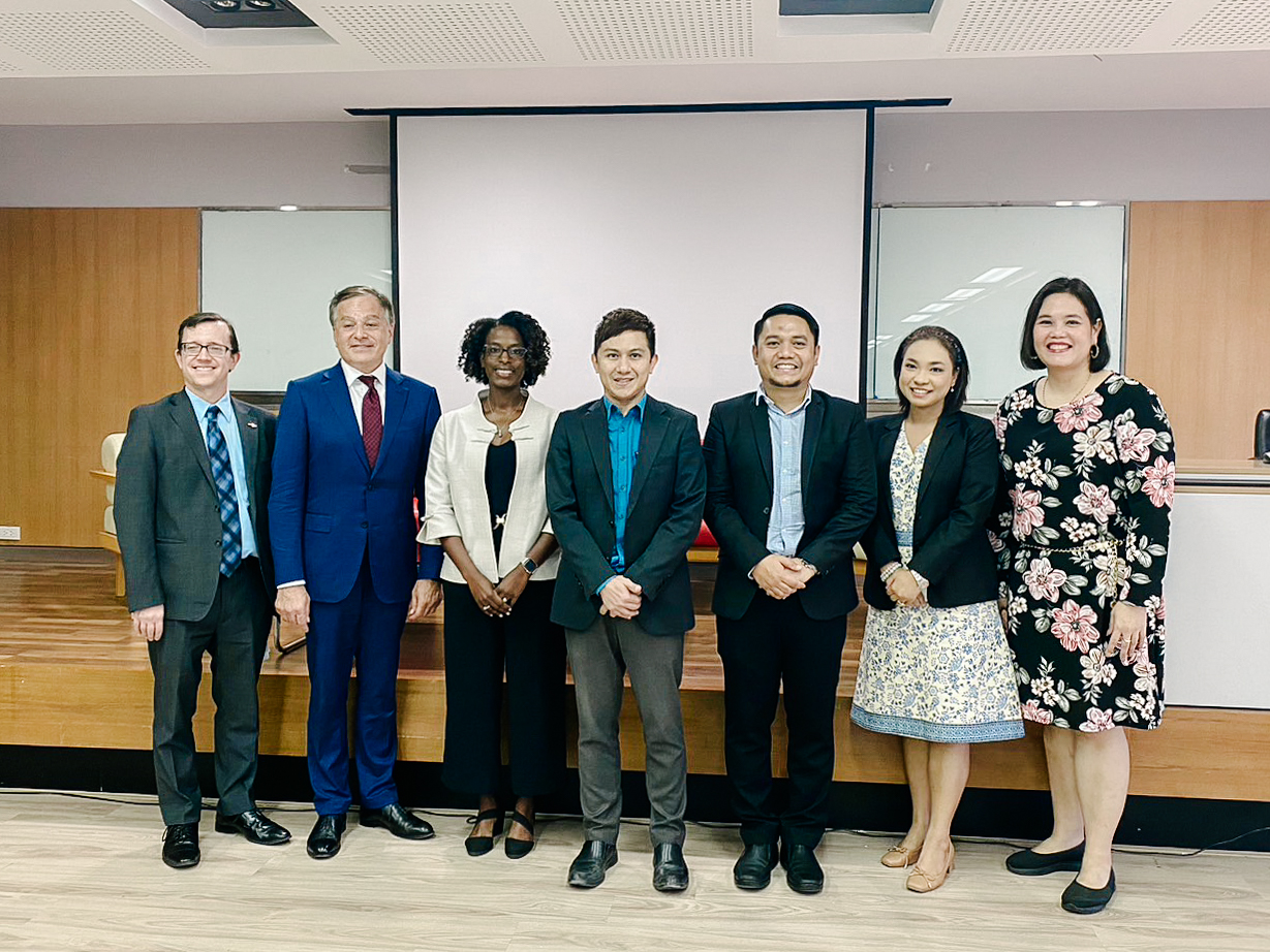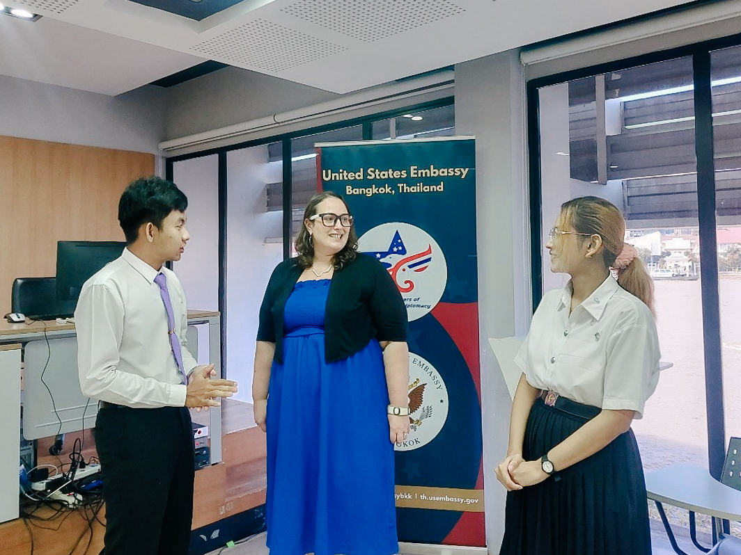 ผู้ช่วยศาสตราจารย์ ดร.วรรณภา ลีระศิริ นำนักศึกษาคณะรัฐศาสตร์และรัฐประศาสนศาสตร์ ที่ผ่านการคัดเลือกจำนวน 4 คน ได้แก่ นางสาวอนรรฆวี แสงฟอง, นางสาวอรทัย สารเถื่อนแก้ว, นายสุภชัย อุดคำ และนางสาวญาดาธิป อภัย เข้าร่วมประชุมวิชาการ “Global Youth Ambassadors Symposium 2023” จัดโดยสถานเอกอัครราชทูตสหรัฐอเมริกาประจำประเทศไทยร่วมกับคณะศิลปศาสตร์ มหาวิทยาลัยธรรมศาสตร์ เมื่อวันพุธที่ 1 พฤศจิกายน 2566 ณ คณะศิลปศาสตร์ มหาวิทยาลัยธรรมศาสตร์ ท่าพระจันทร์