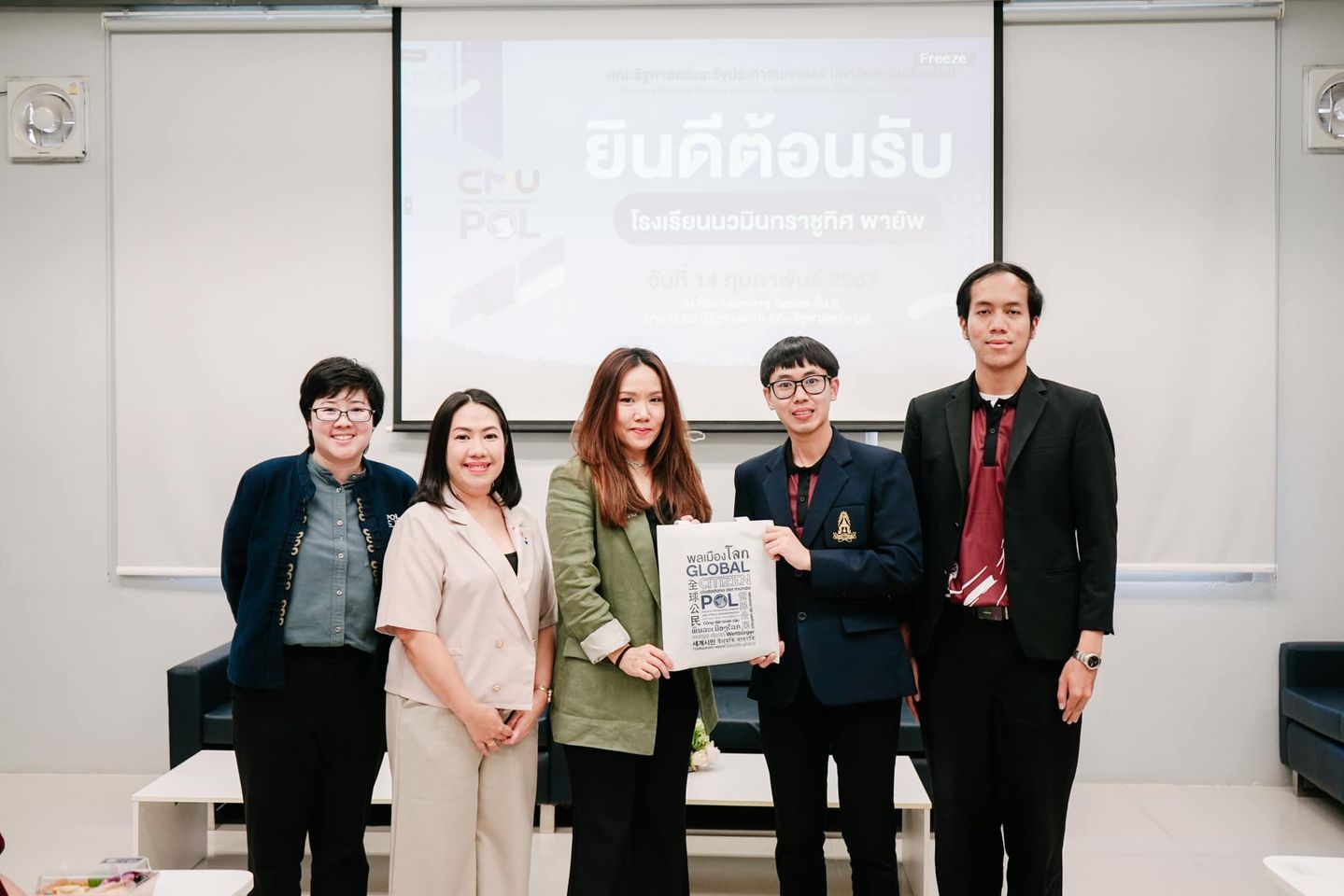 คณะรัฐศาสตร์และรัฐประศาสนศาสตร์ มหาวิทยาลัยเชียงใหม่ ให้การต้อนรับคณะนักเรียนและคุณครูจากโรงเรียนนวมินทราชูทิศ พายัพ เนื่องในโอกาสได้เข้าเยี่ยมชมและศึกษาดูงานคณะรัฐศาสตร์และรัฐประศาสนศาสตร์ มหาวิทยาลัยเชียงใหม่ โดยมีรองศาสตราจารย์ ดร.ไพลิน ภู่จีนาพันธุ์ คณบดีคณะรัฐศาสตร์และรัฐประศาสนศาสตร์ พร้อมด้วย ผู้ช่วยศาสตราจารย์ ดร.ชนินทร เพ็ญสูตร รองคณบดีฝ่ายวิชาการ ให้การกล่าวต้อนรับและพูดคุยแนะนำข้อมูลเกี่ยวกับคณะฯ พร้อมนักศึกษาแต่ละสำนักวิชาแนะนำข้อมูล กิจกรรมเสริมหลักสูตรต่าง ๆ ทั้งภายในคณะและมหาวิทยาลัย เมื่อวันพุธที่ 14 กุมภาพันธ์ ณ ห้อง Learning Space ชั้น 2 อาคาร 50 ปีรัฐศาสตร์ คณะรัฐศาสตร์ฯ มหาวิทยาลัยเชียงใหม่