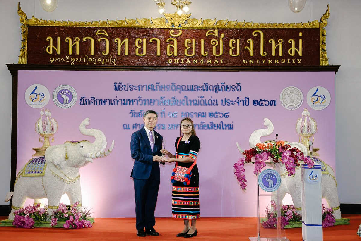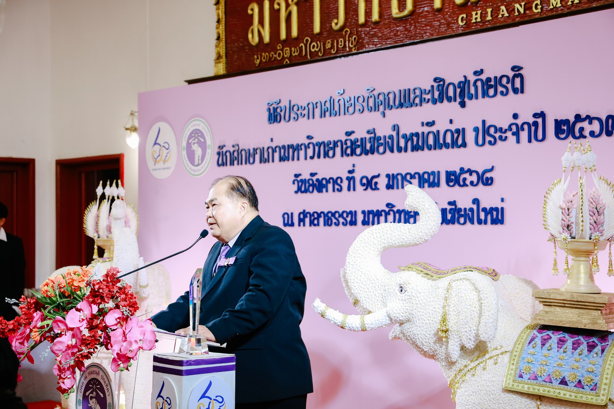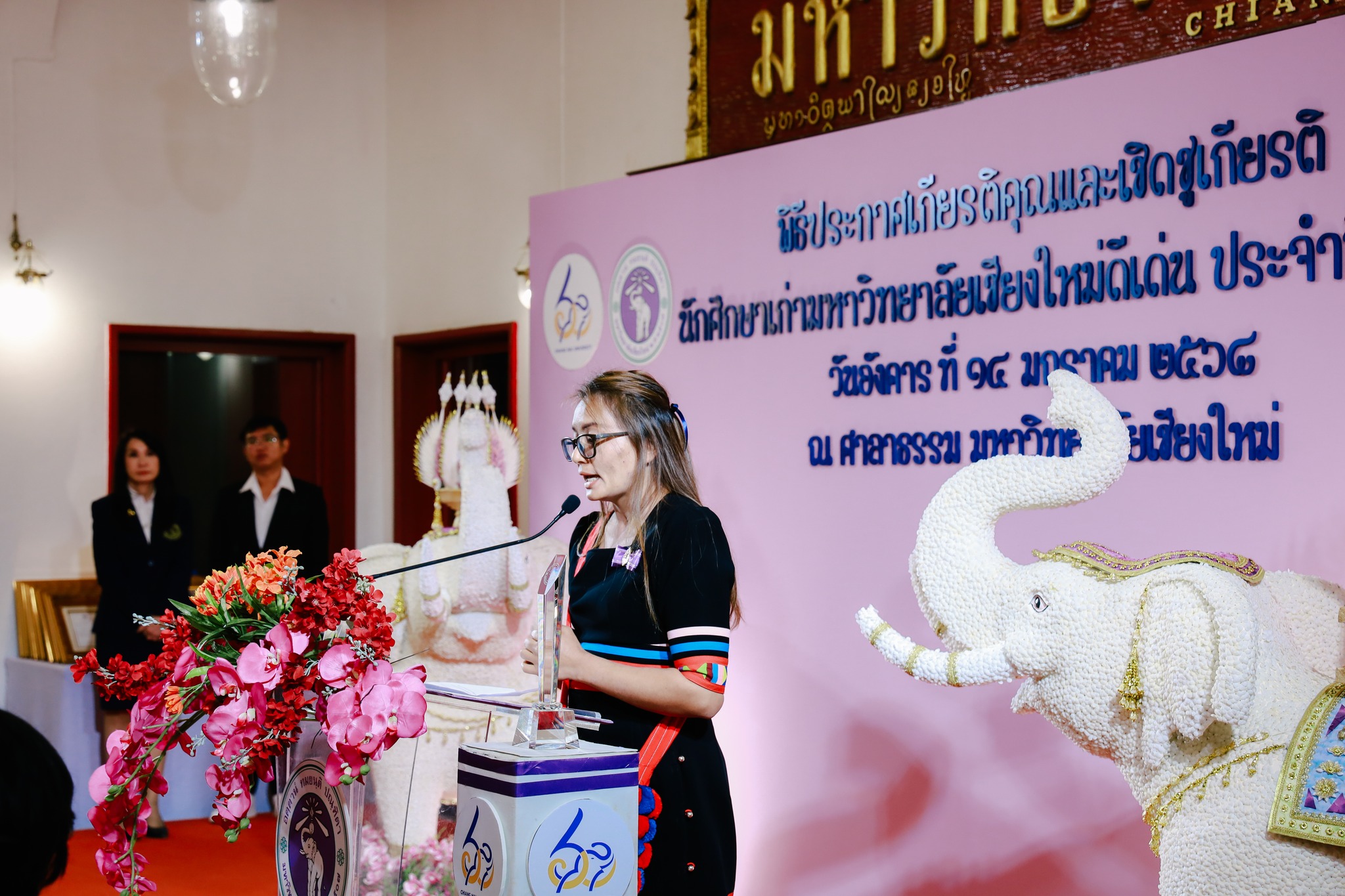 รองศาสตราจารย์ ดร.ไพลิน ภู่จีนาพันธุ์ คณบดีคณะรัฐศาสตร์และรัฐประศาสนศาสตร์ มหาวิทยาลัยเชียงใหม่ พร้อมด้วยคณะผู้บริหาร ร่วมในพิธีประกาศเกียรติคุณและเชิดชูเกียรติ นักศึกษาเก่าดีเด่นมหาวิทยาลัยเชียงใหม่ ประจำปี 2567