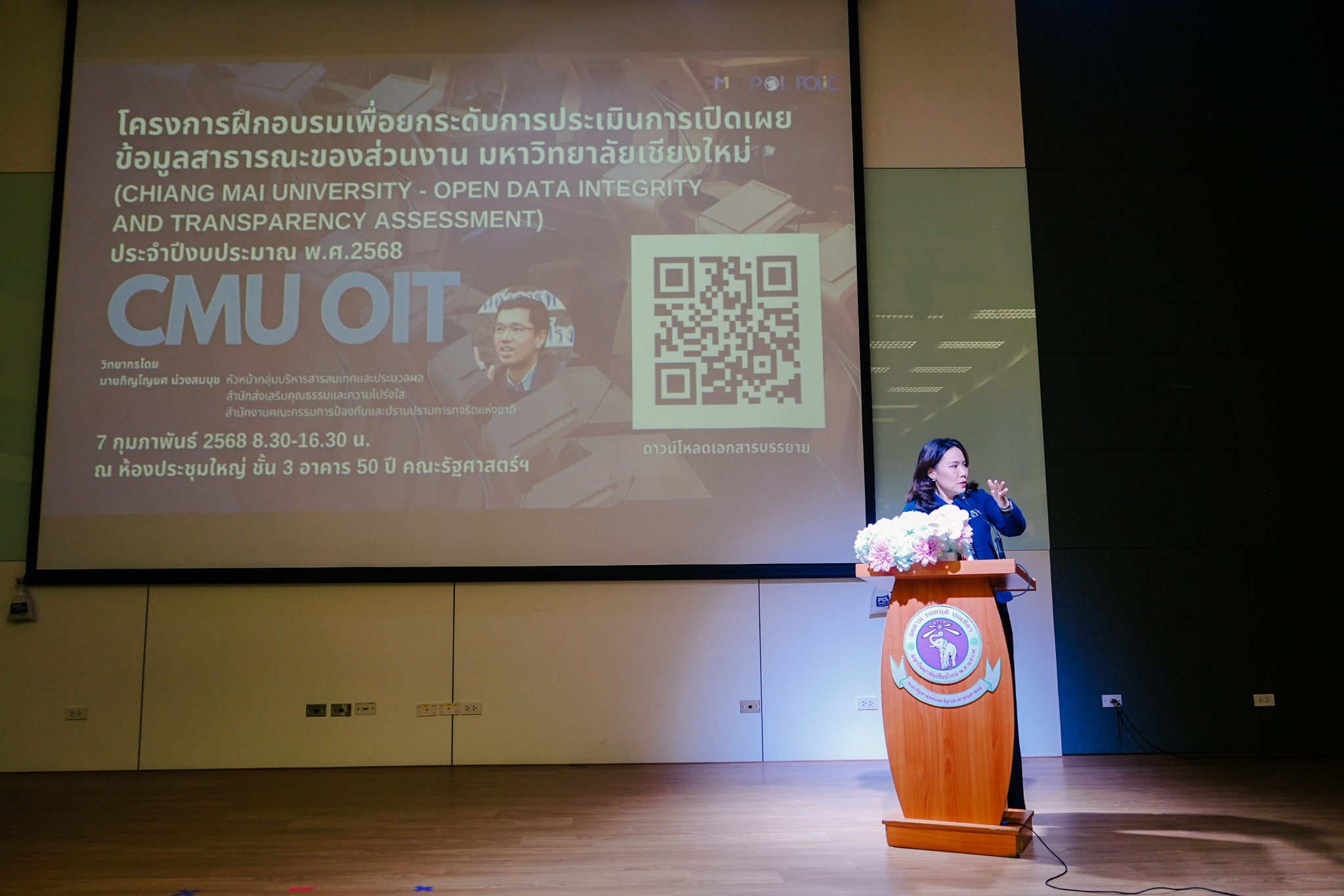 ศูนย์นวัตกรรมรัฐศาสตร์ คณะรัฐศาสตร์ฯ ได้ดำเนินการจัดโครงการฝึกอบรมเพื่อยกระดับการประเมินการเปิดเผยข้อมูลสาธารณะของส่วนงาน มหาวิทยาลัยเชียงใหม่ (Chiang Mai University - Open Data Integrity and Transparency Assessment) ประจำปี พ.ศ.2568 แก่บุคลากรมหาวิทยาลัยเชียงใหม่ โดยมีวัตถุประสงค์เพื่อสร้างความรู้ความเข้าใจที่ถูกต้องด้านการประเมินการเปิดเผยข้อมูลสาธารณะของส่วนงาน มหาวิทยาลัยเชียงใหม่ (CMU-OIT) แก่บุคลากรมหาวิทยาลัยเชียงใหม่ โดยมี นายภิญโญยศ ม่วงสมมุข เจ้าพนักงานป้องกันการทุจริตชำนาญการ หัวหน้ากลุ่มบริหารสารสนเทศและประมวลผล สำนักงานประเมินคุณธรรมและความโปร่งใส สำนักงานคณะกรรมการป้องกันและปราบปรามการทุจริตแห่งชาติ (สำนักงาน ป.ป.ช.) เป็นวิทยากรบรรยายในโครงการดังกล่าว ซึ่งโครงการดังกล่าวได้รับความร่วมมือจากผู้บริหาร คณาจารย์ เจ้าหน้าที่ในเเต่ละส่วนงานของมหาวิทยาลัยเชียงใหม่เข้าร่วมรับฟังเเนวทางการประเมิน CMU-OIT เป็นจำนวนมาก เมื่อวันศุกร์ที่ 7 กุมภาพันธ์ 2568 เวลา 08.30-16.30 น. ณ ห้องประชุมใหญ่ ชั้น 3 อาคาร 50 ปี คณะรัฐศาสตร์ฯ