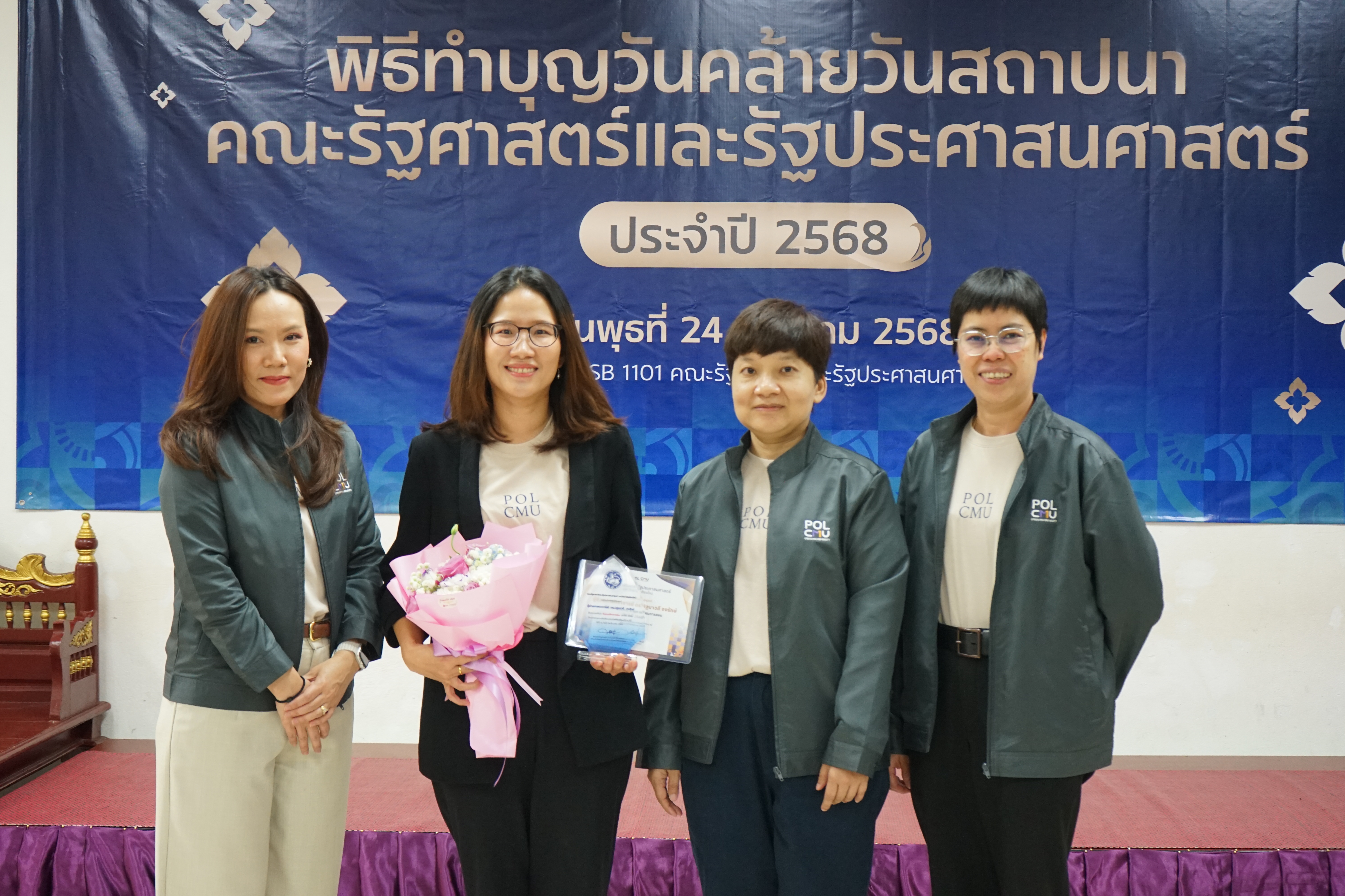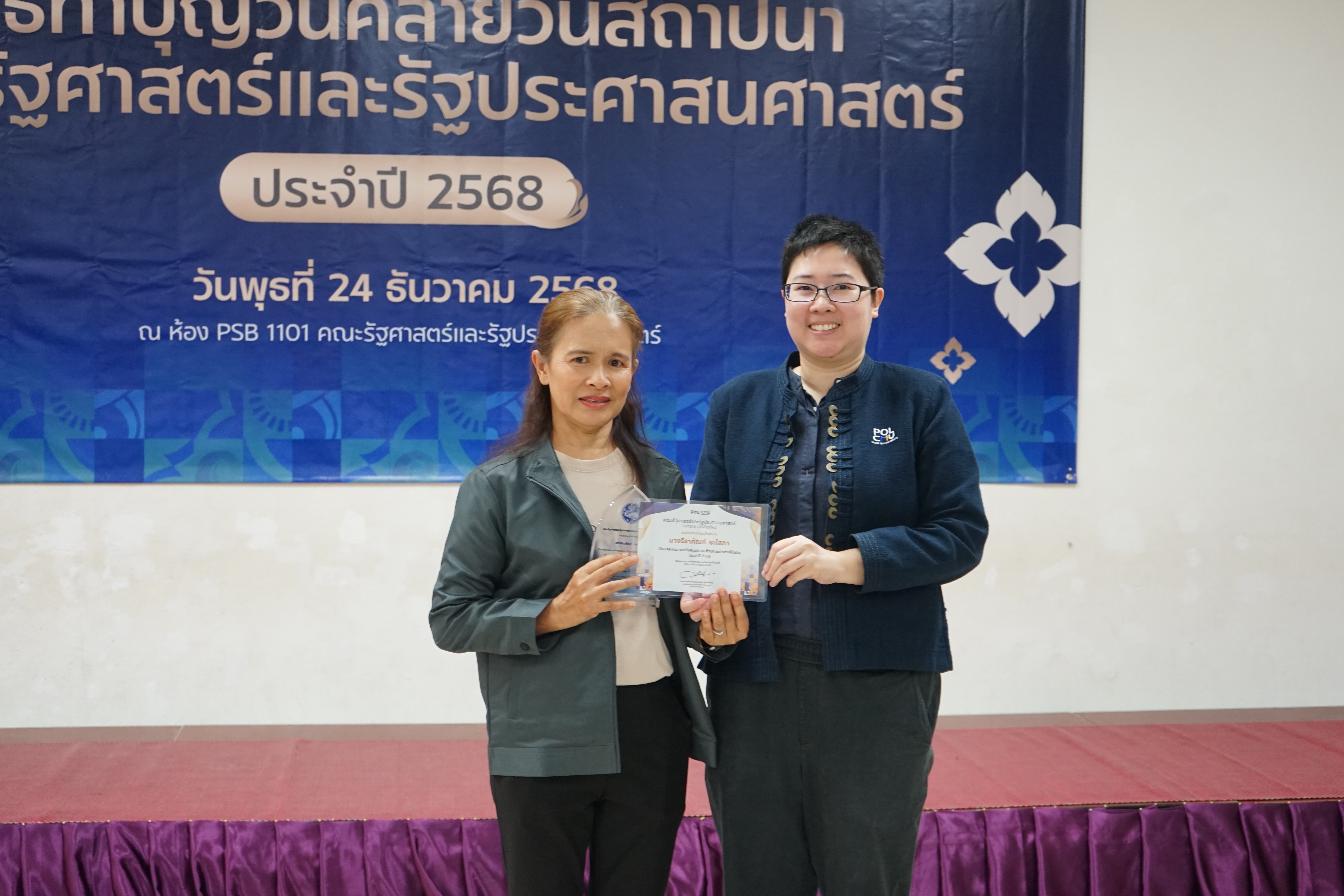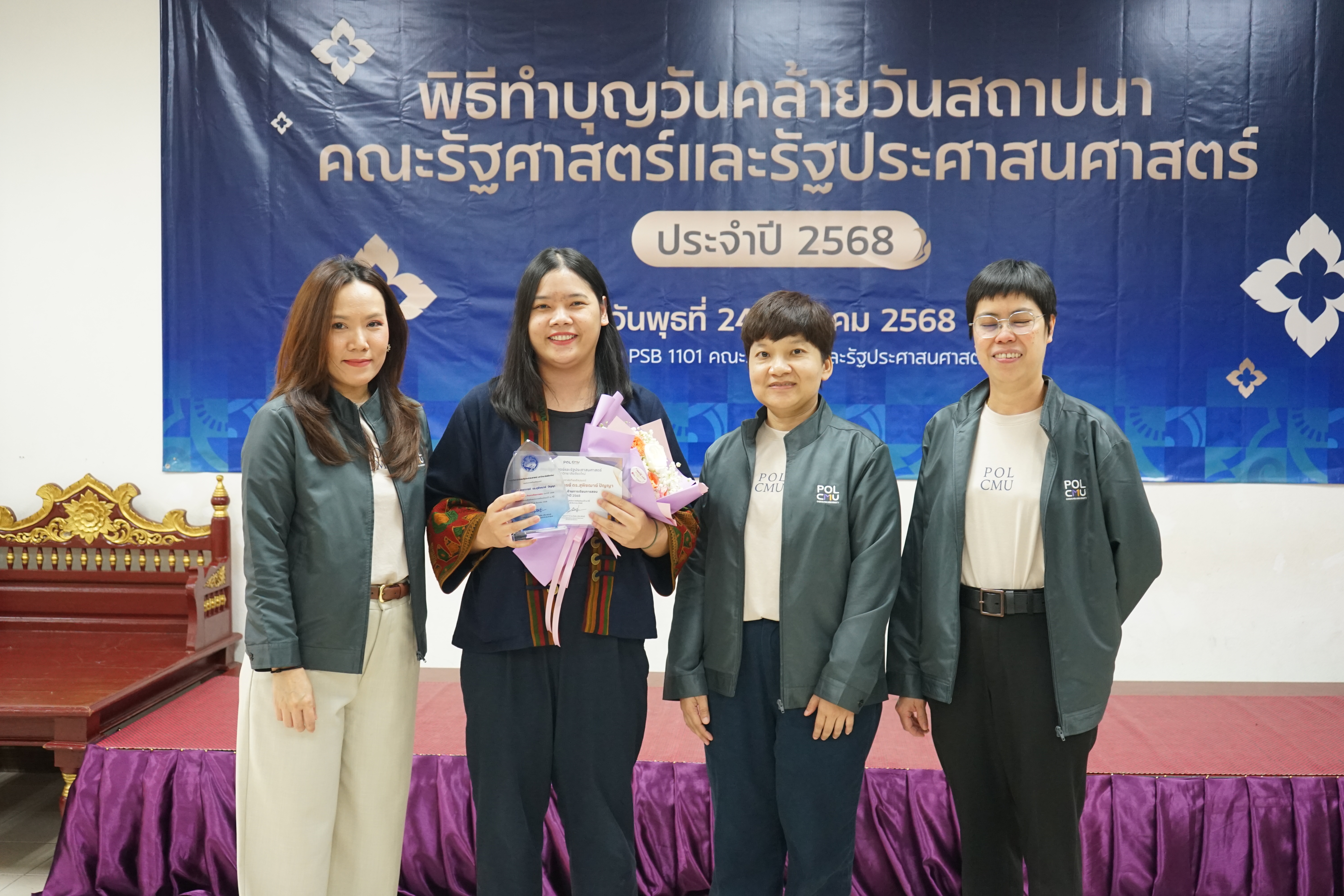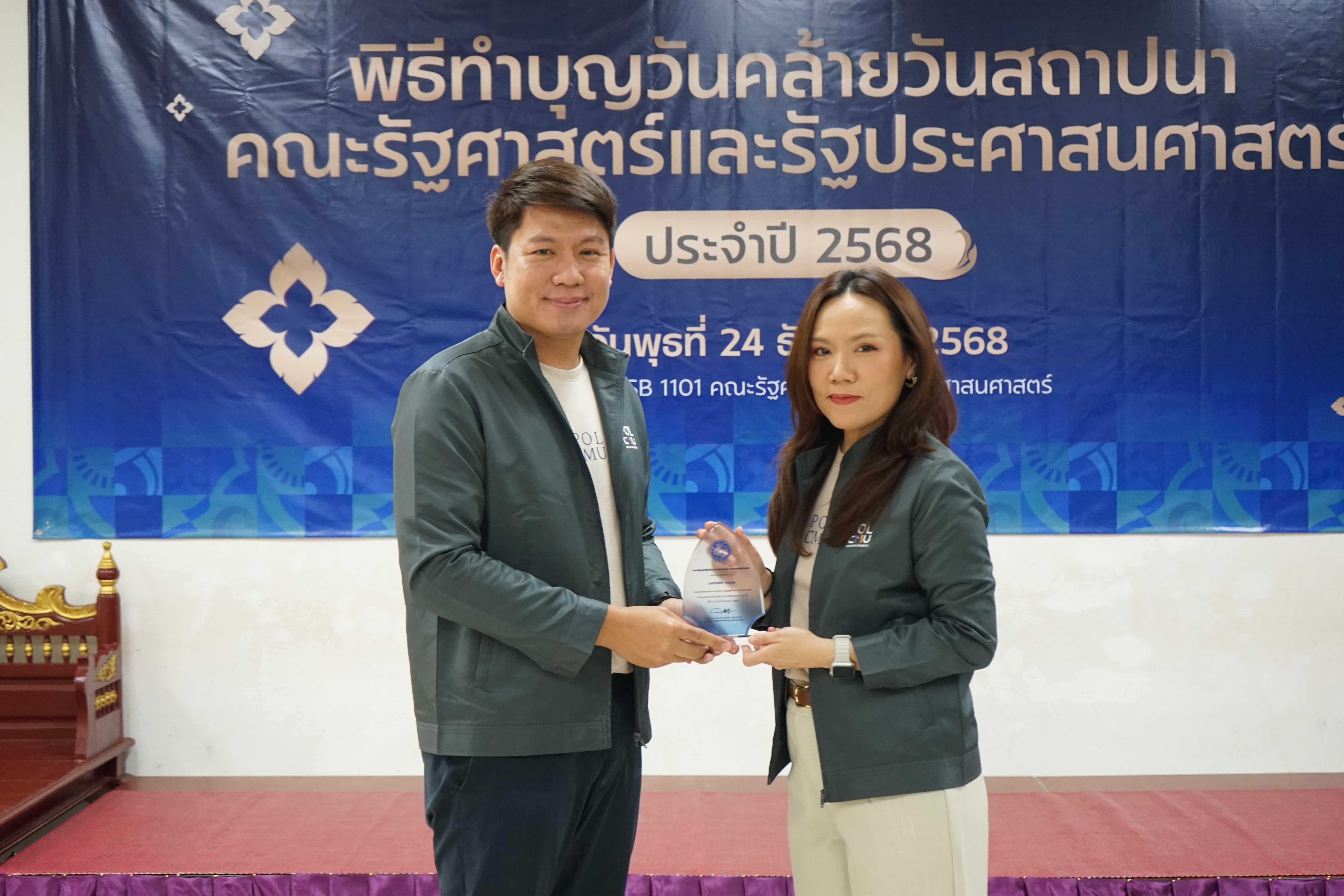 ทั้งนี้ คณะรัฐศาสตร์ฯ ได้จัดพิธีมอบรางวัลภายในพิธีทำบุญเนื่องในโอกาสวันคล้ายวันสถาปนาคณะรัฐศาสตร์ฯ เพื่อร่วมแสดงความยินดีและเป็นขวัญกำลังใจแก่บุคลากรทุกท่าน