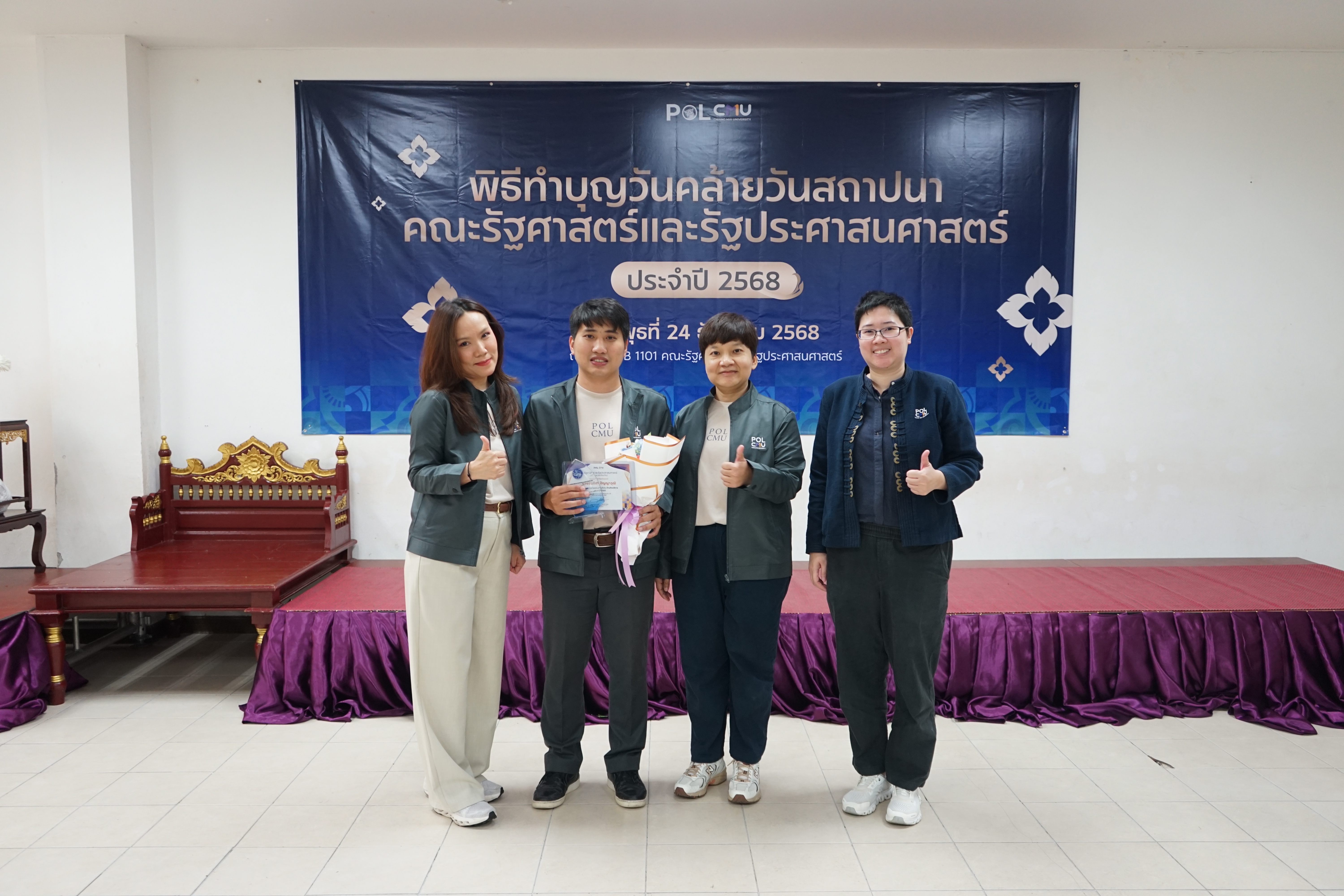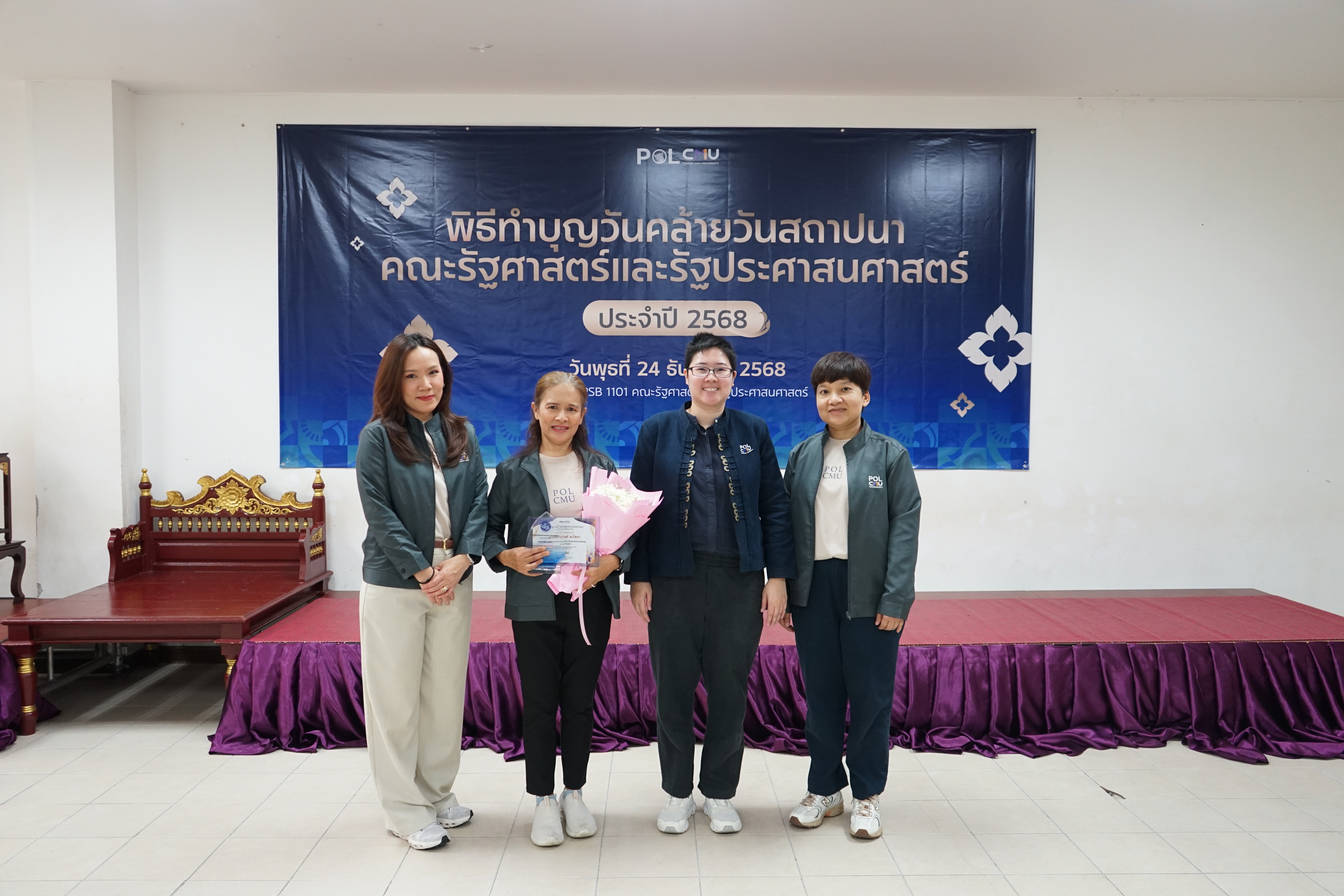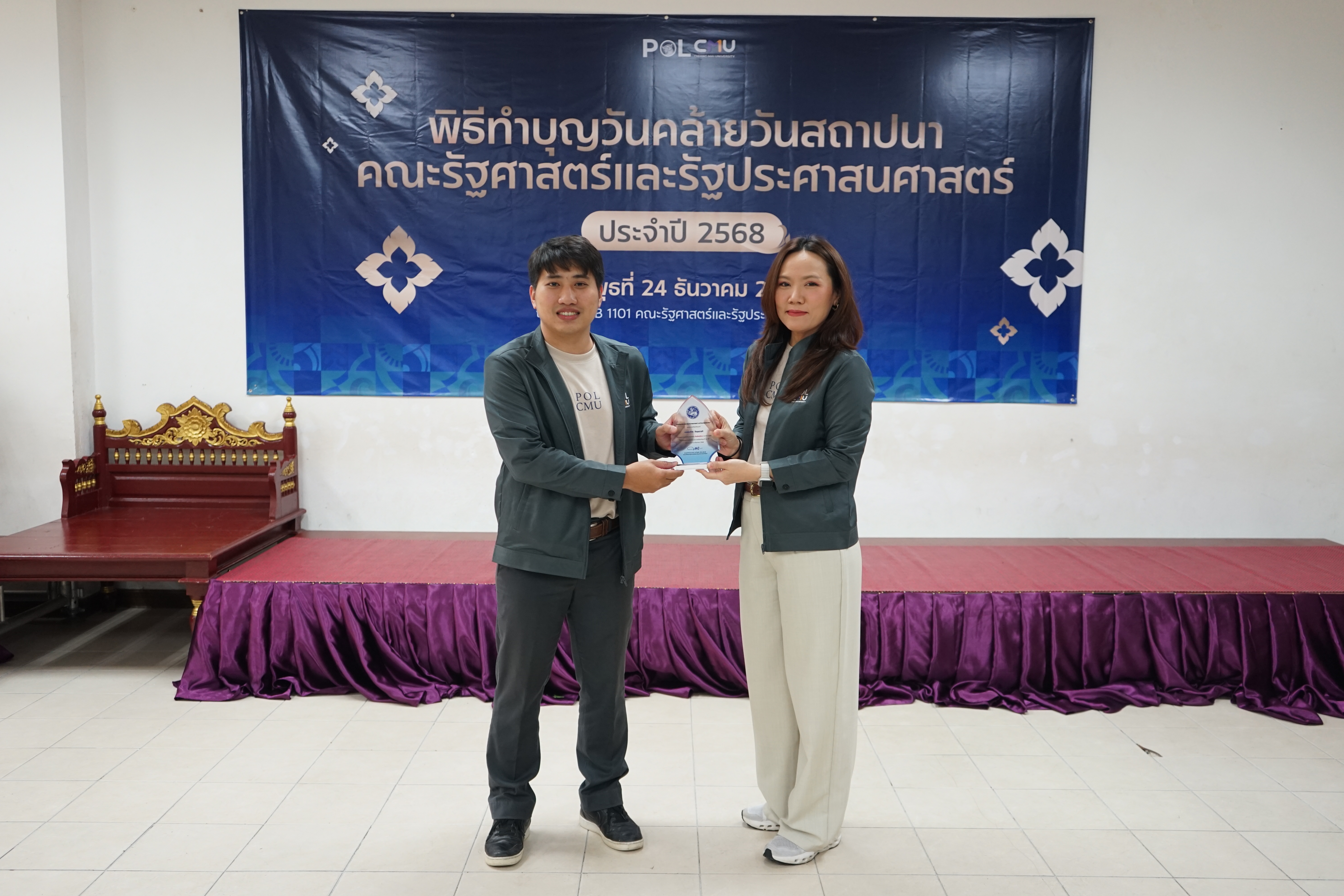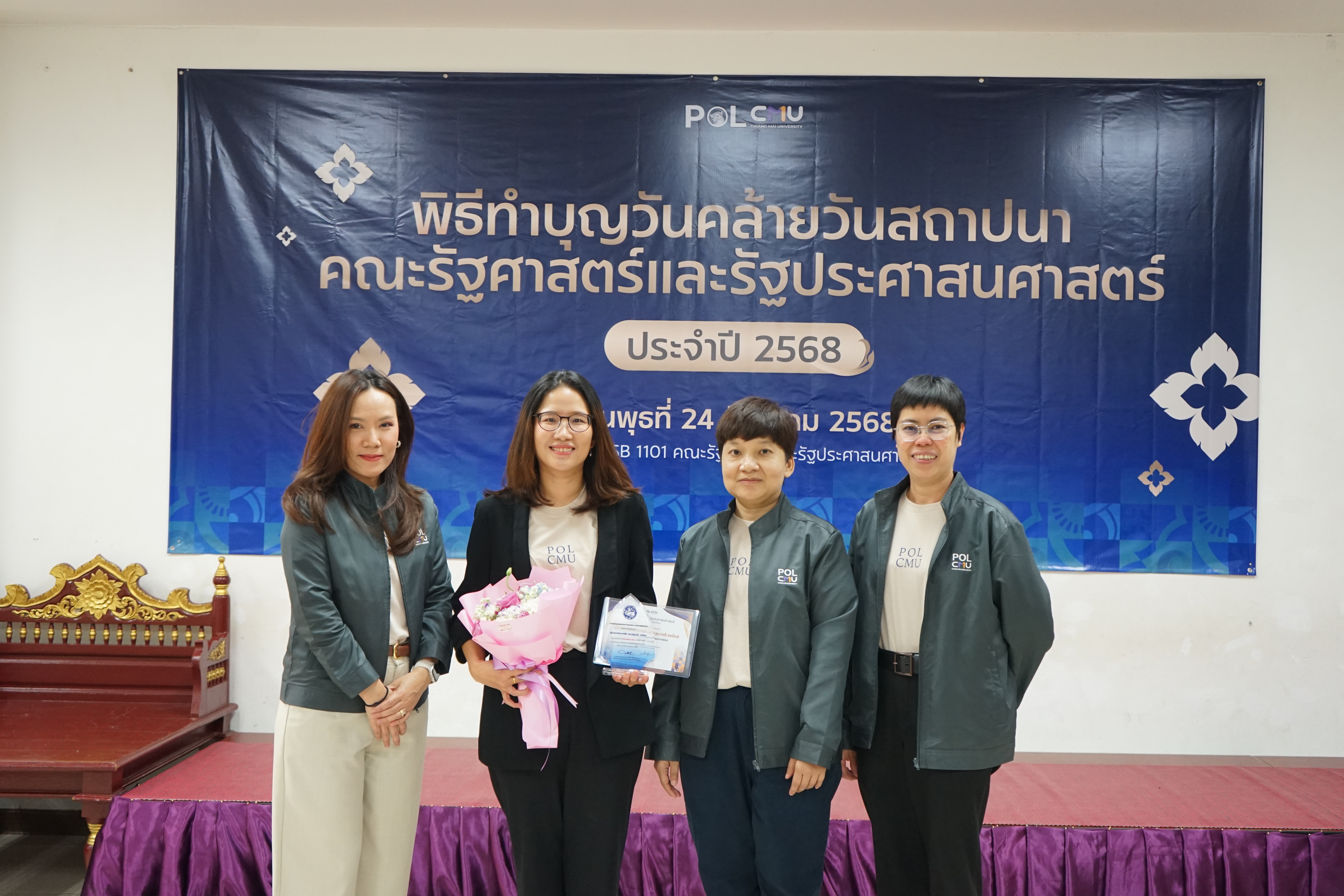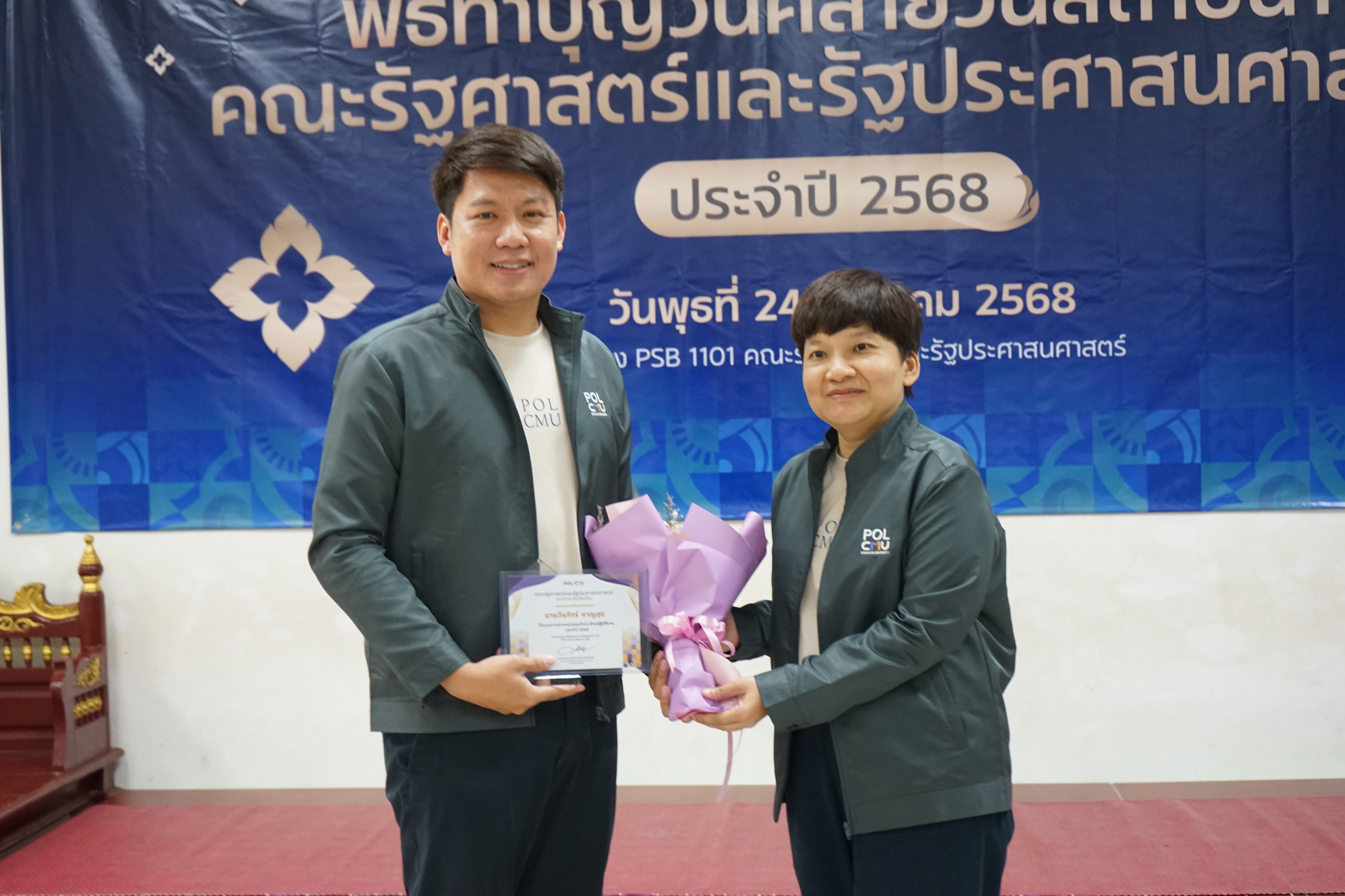 ทั้งนี้ คณะรัฐศาสตร์ฯ ได้จัดพิธีมอบรางวัลภายในพิธีทำบุญเนื่องในโอกาสวันคล้ายวันสถาปนาคณะรัฐศาสตร์ฯ เพื่อร่วมแสดงความยินดีและเป็นขวัญกำลังใจแก่บุคลากรทุกท่าน