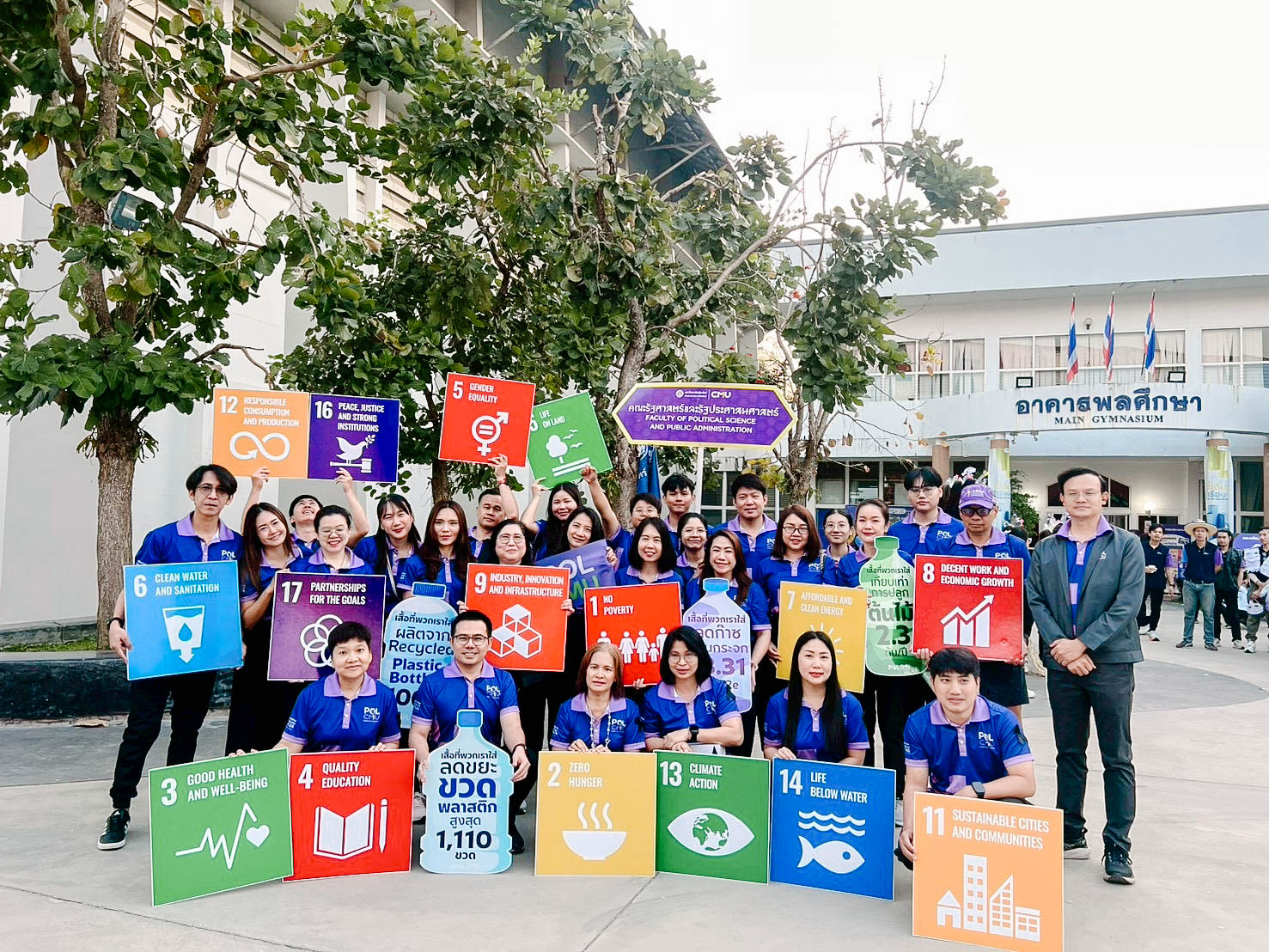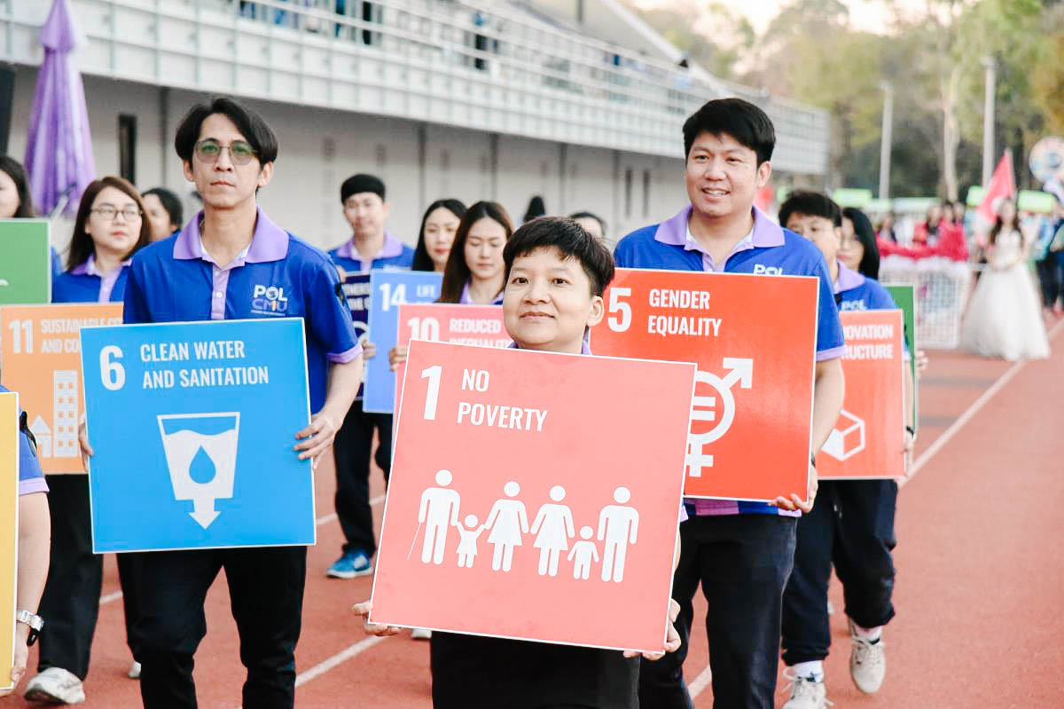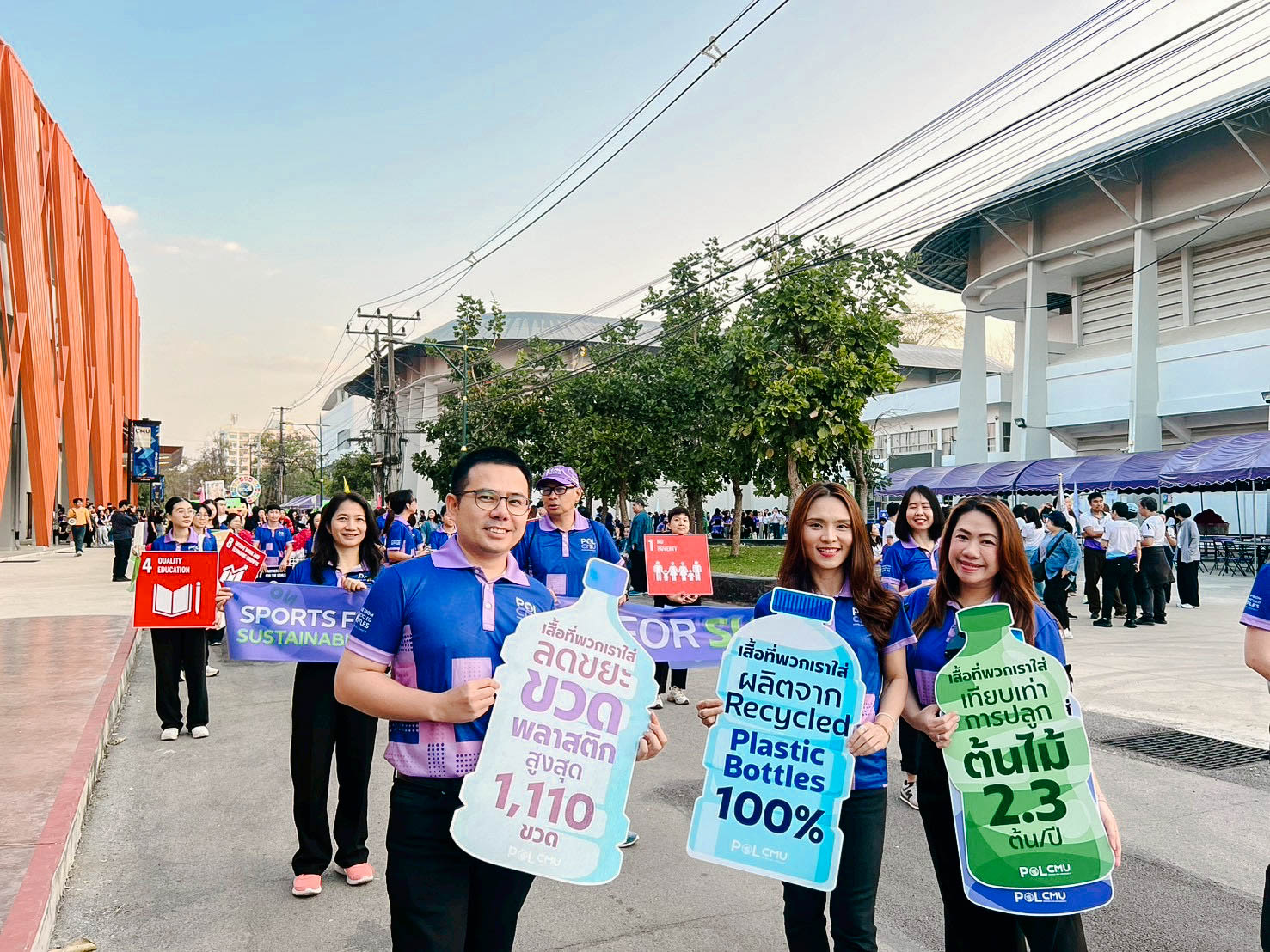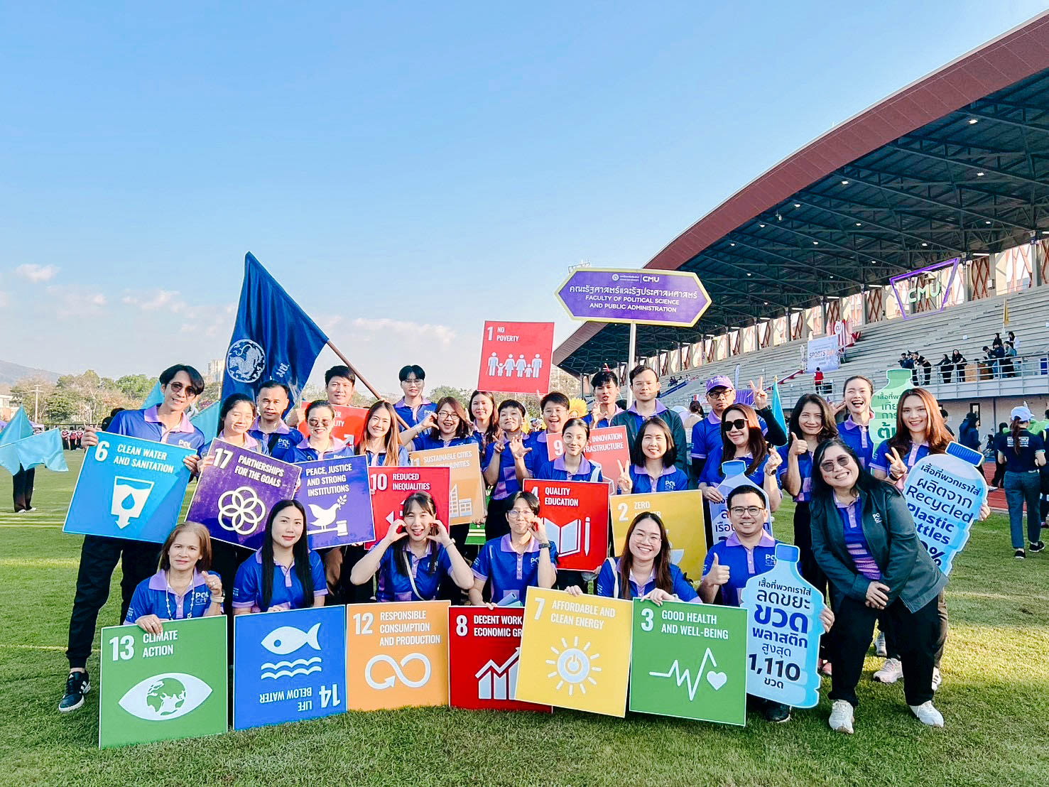 รัฐศาสตร์ฯ มช. ร่วมพิธีเปิดและขบวนพาเหรด กีฬาบุคลากรมหาวิทยาลัยเชียงใหม่ ประจำปี 2569 (CMU Sports Day 2026) ขับเคลื่อนนโยบาย “Sports for Sustainability” ส่งเสริมสุขภาพและรักษ์โลก 🏅♻️💪🏻♻️🌏 คณะรัฐศาสตร์และรัฐประศาสนศาสตร์ มหาวิทยาลัยเชียงใหม่ เข้าร่วมพิธีเปิดและกิจกรรมเดินขบวนพาเหรดในงาน กีฬาบุคลากร มหาวิทยาลัยเชียงใหม่ ประจำปี 2569 ภายใต้แนวคิด “Sports for Sustainability” โดยเลือกใช้เสื้อที่มีกระบวนการผลิตจากวัสดุรีไซเคิล 100 % เพื่อลดผลกระทบต่อสิ่งแวดล้อมและก๊าซเรือนกระจกอย่างยั่งยืน Sport Day รักษ์โลก Upcycling เปลี่ยนขยะเป็นพลังงานสะอาด ลดขยะขวดพลาสติกสูงสุด 1,110 ขวด เมื่อวันเสาร์ที่ 7 กุมภาพันธ์ 2569 ณ สนามกีฬากลาง มหาวิทยาลัยเชียงใหม่