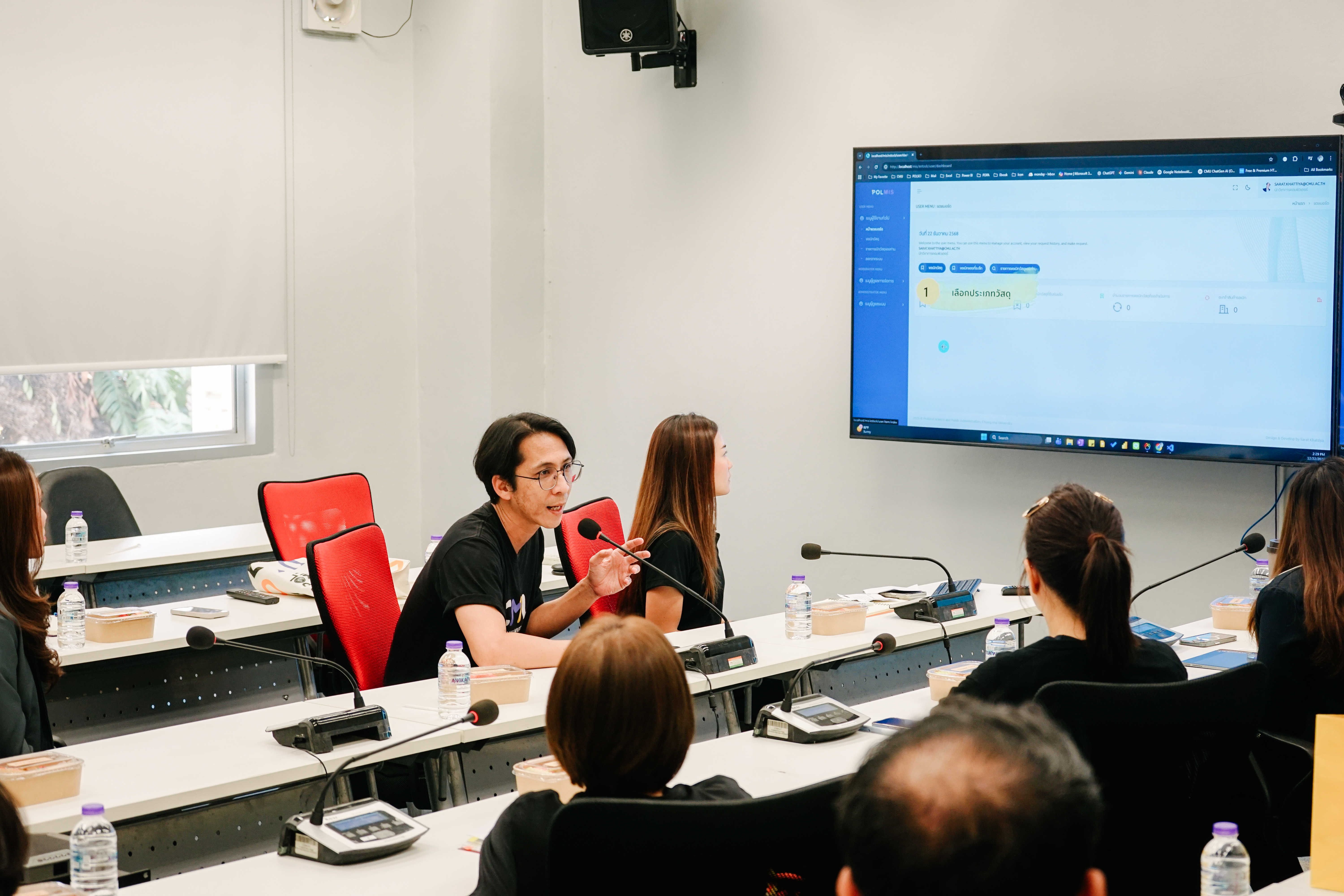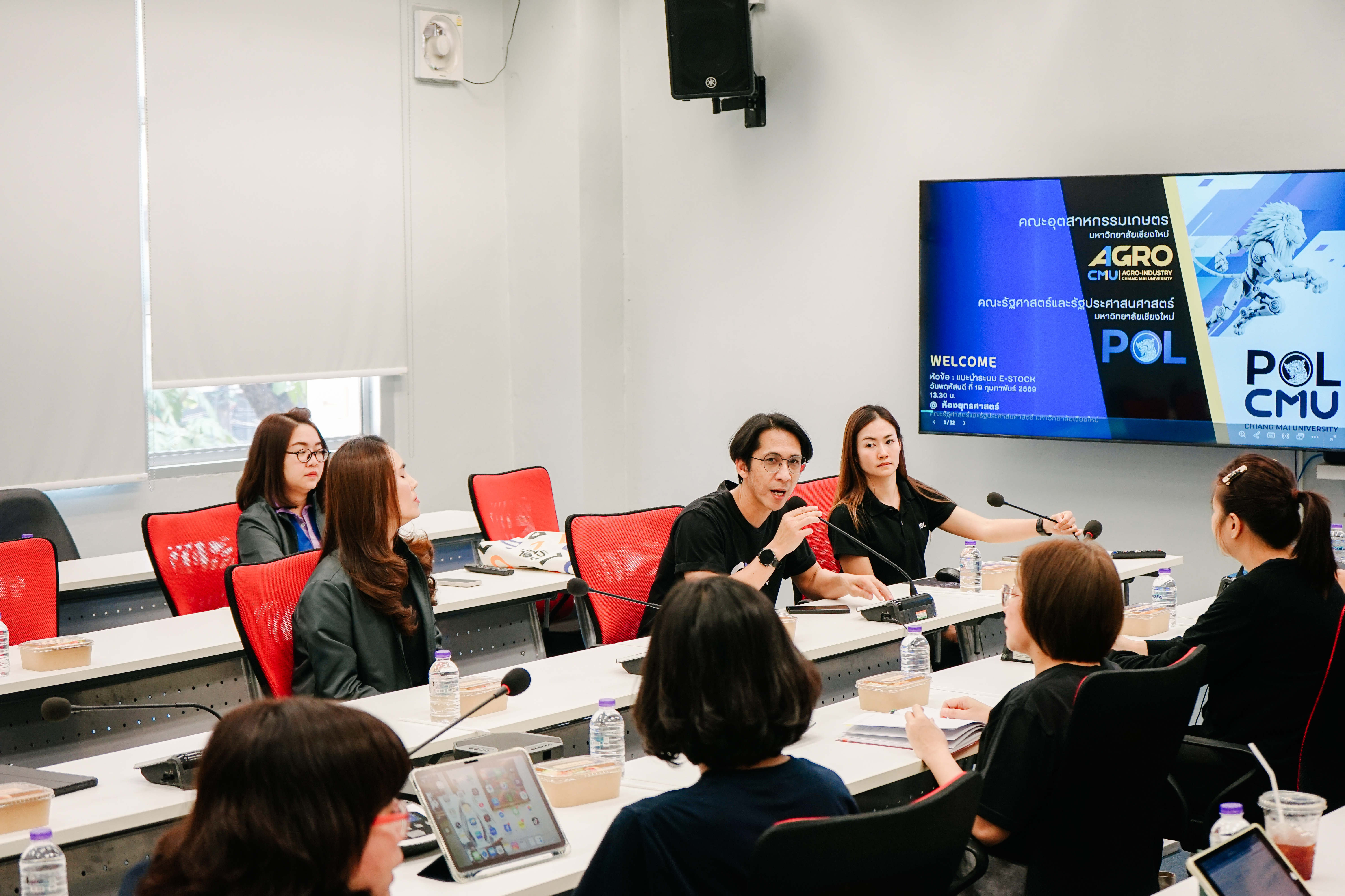 คณะอุตสาหกรรมเกษตร มช. ศึกษาดูงานระบบ e‑Stock ของคณะรัฐศาสตร์และรัฐประศาสนศาสตร์ มช. ⚙️📦วันที่ 19 กุมภาพันธ์ 2569 คณะรัฐศาสตร์และรัฐประศาสนศาสตร์ มหาวิทยาลัยเชียงใหม่ ให้การต้อนรับคณะผู้บริหารและบุคลากรจาก คณะอุตสาหกรรมเกษตร มช. ในโอกาสเดินทางมาศึกษาดูงาน ระบบ e‑Stock ระบบบริหารจัดการพัสดุและวัสดุ Online ที่พัฒนาขึ้นโดยทีมงานของคณะรัฐศาสตร์ฯ โดยทีมผู้พัฒนาได้บรรยายภาพรวมการทำงานของระบบ พร้อมสาธิตขั้นตอนการใช้งานแบบครบวงจร ตั้งแต่การขอเบิก การอนุมัติ ไปจนถึงการรับของด้วย QR Code เพื่อให้ผู้เข้าร่วมได้เห็นการทำงานแบบ paperless ที่ช่วยเพิ่มประสิทธิภาพ ลดความผิดพลาด และเสริมความโปร่งใสในกระบวนการทำงาน ช่วงแลกเปลี่ยนเรียนรู้ระหว่างสองคณะเป็นไปอย่างอบอุ่น มีการพูดคุยถึงแนวทางพัฒนาระบบสารสนเทศ การบริหารจัดการคลังวัสดุ และการนำเทคโนโลยีมาปรับปรุงกระบวนงานให้สอดคล้องกับยุคดิจิทัล