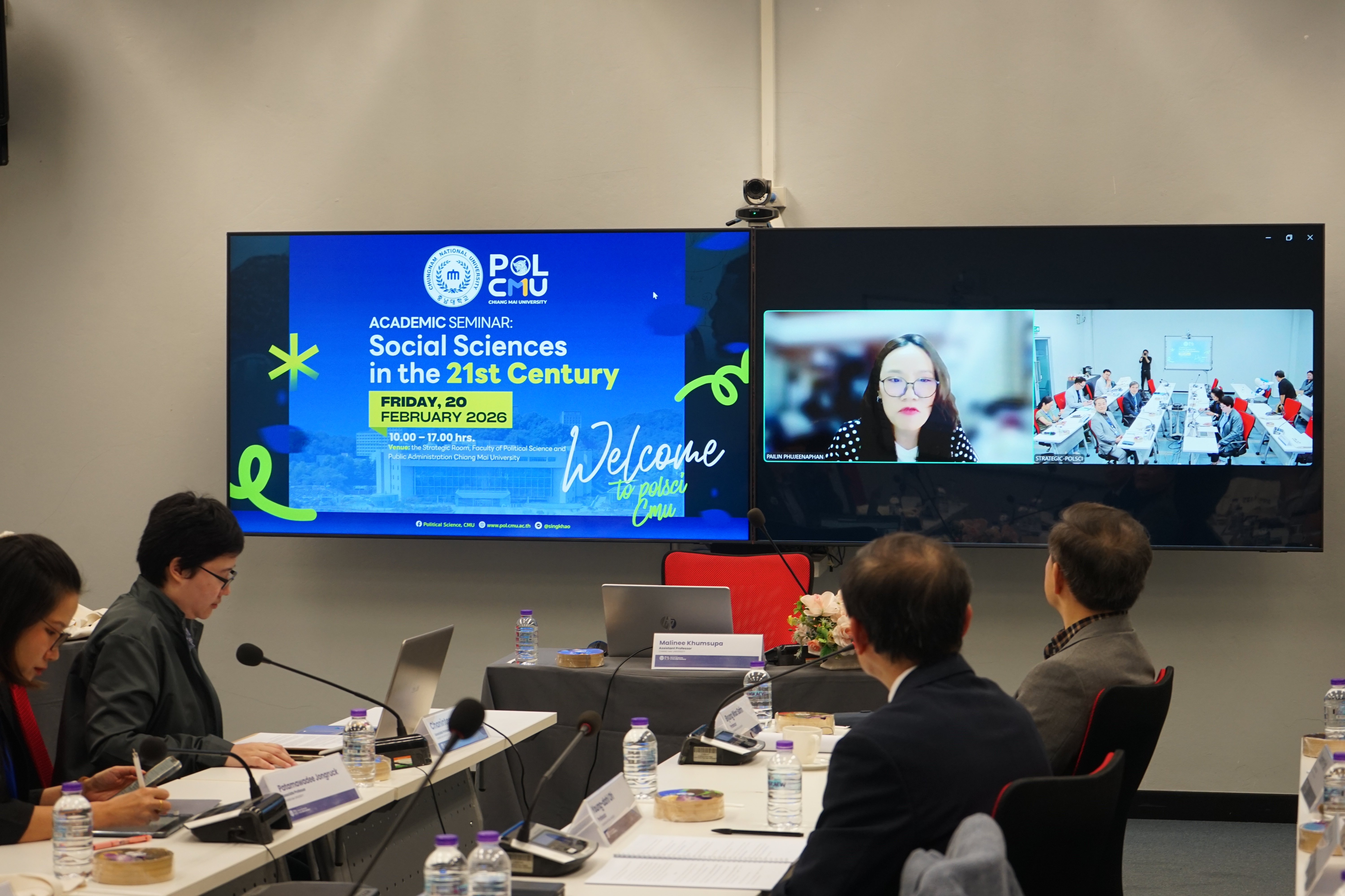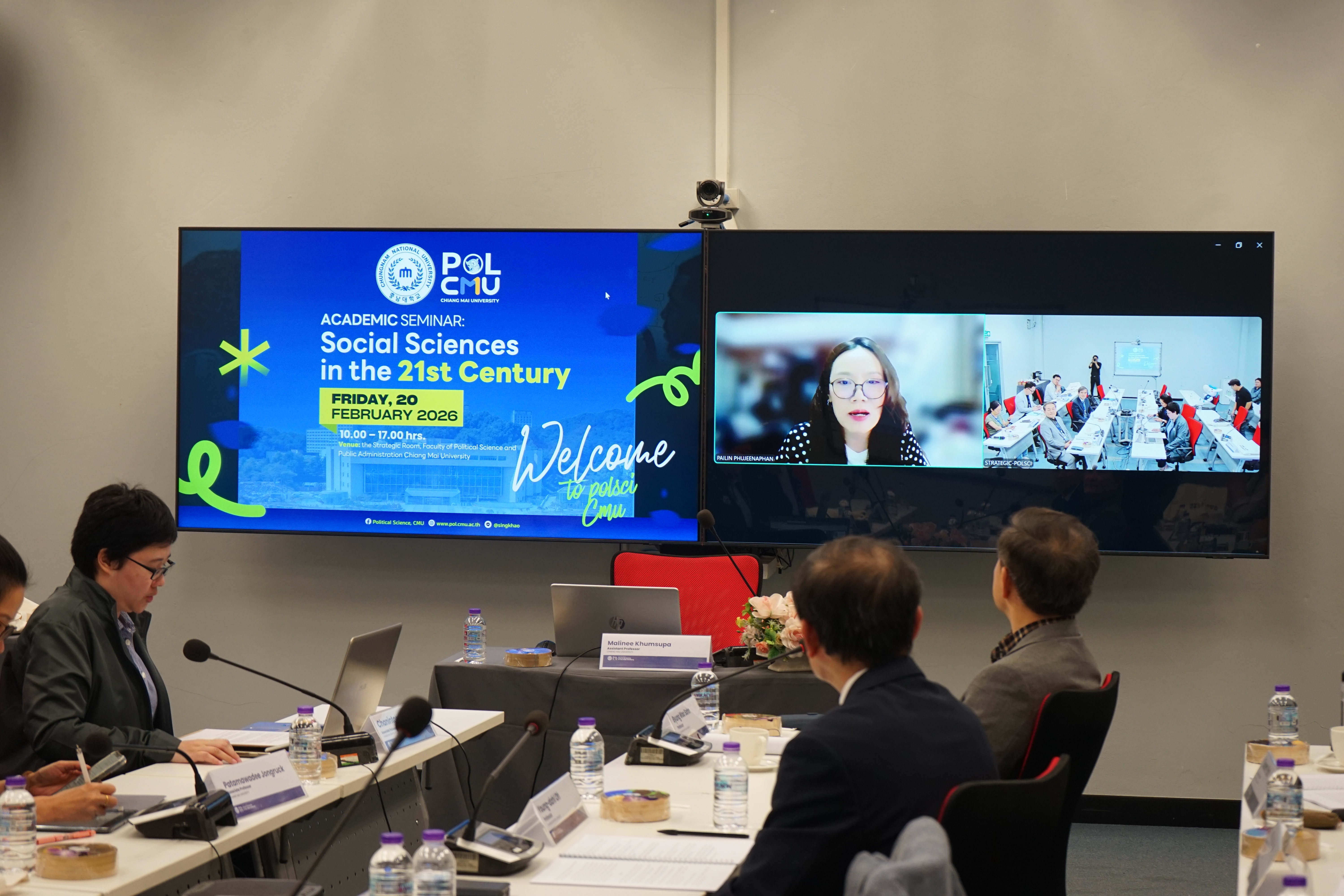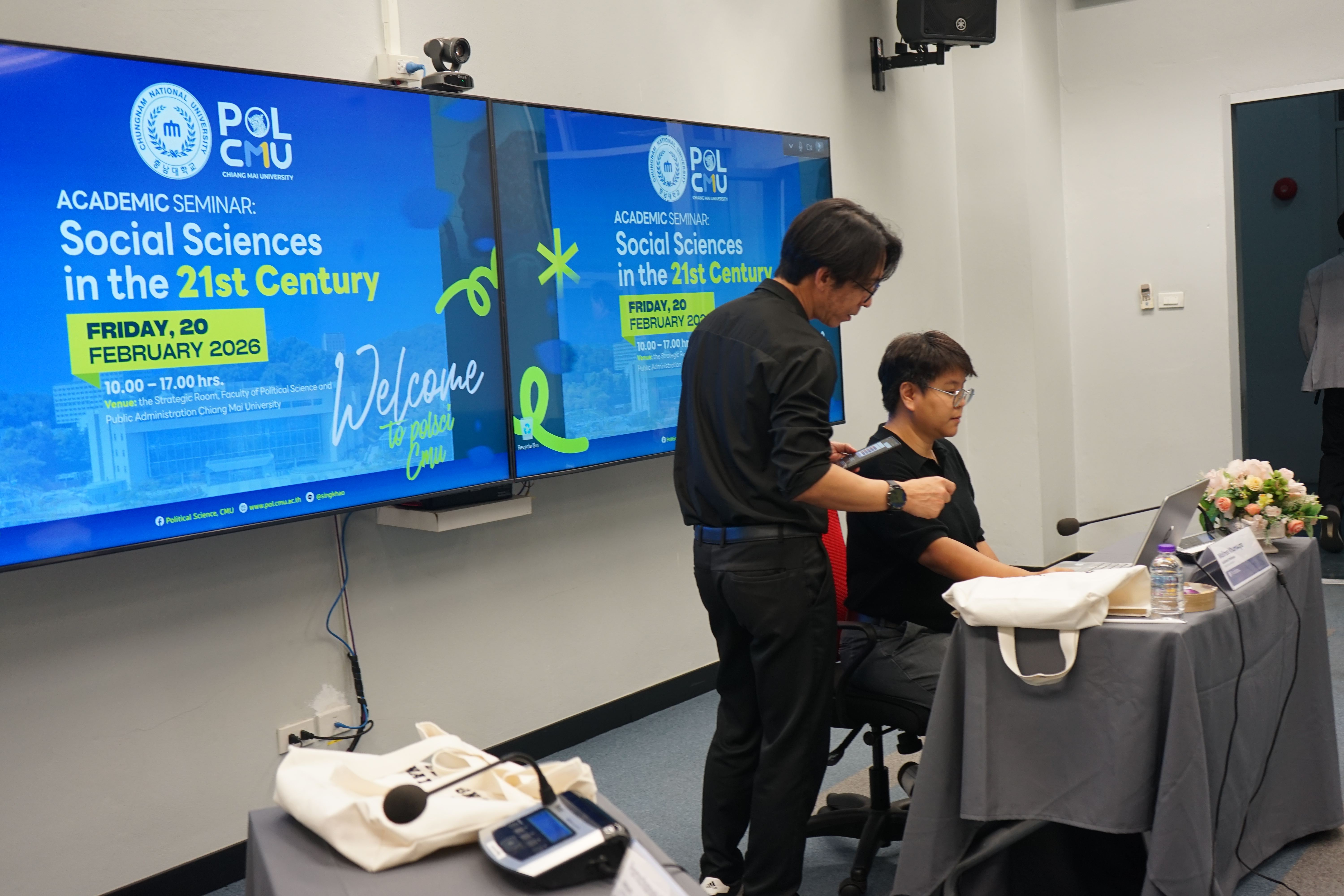 คณะรัฐศาสตร์และรัฐประศาสนศาสตร์ มหาวิทยาลัยเชียงใหม่ จัดงานสัมมนาวิชาการเรื่อง “Social Sciences in the 21st Century” ร่วมกับ Department of Political Science and Diplomacy, Chungnam National University (CNU) สาธารณรัฐเกาหลี เมื่อวันศุกร์ที่ 20 กุมภาพันธ์ 2569 ณ ห้องประชุมยุทธศาสตร์ ชั้น 2 อาคาร 50 ปี คณะรัฐศาสตร์ฯ มหาวิทยาลัยเชียงใหม่