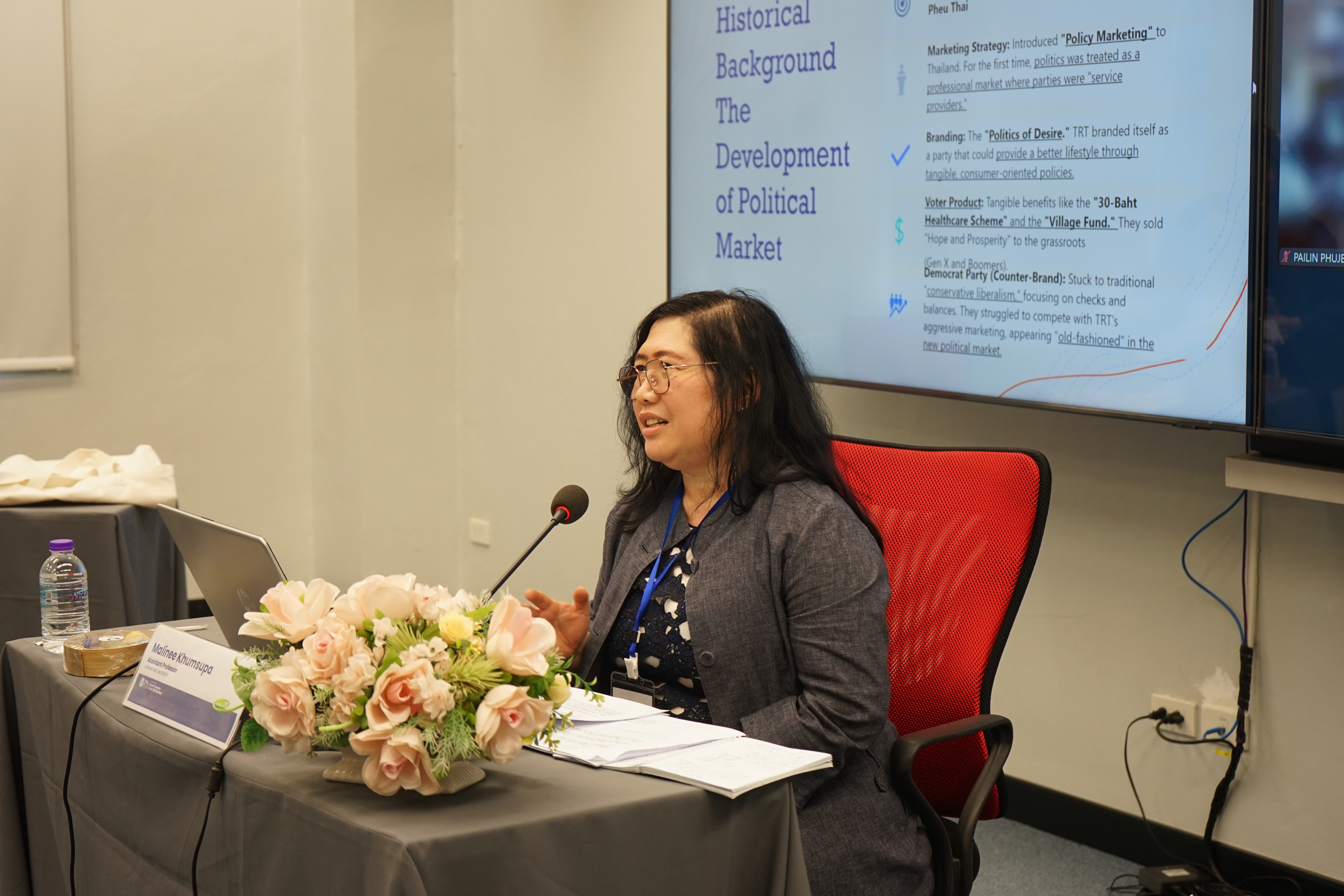 1. หัวข้อ “Thai Political Market and Political Fans in the Digital Society” โดย ผศ.ดร.มาลินี คุ้มสุภา