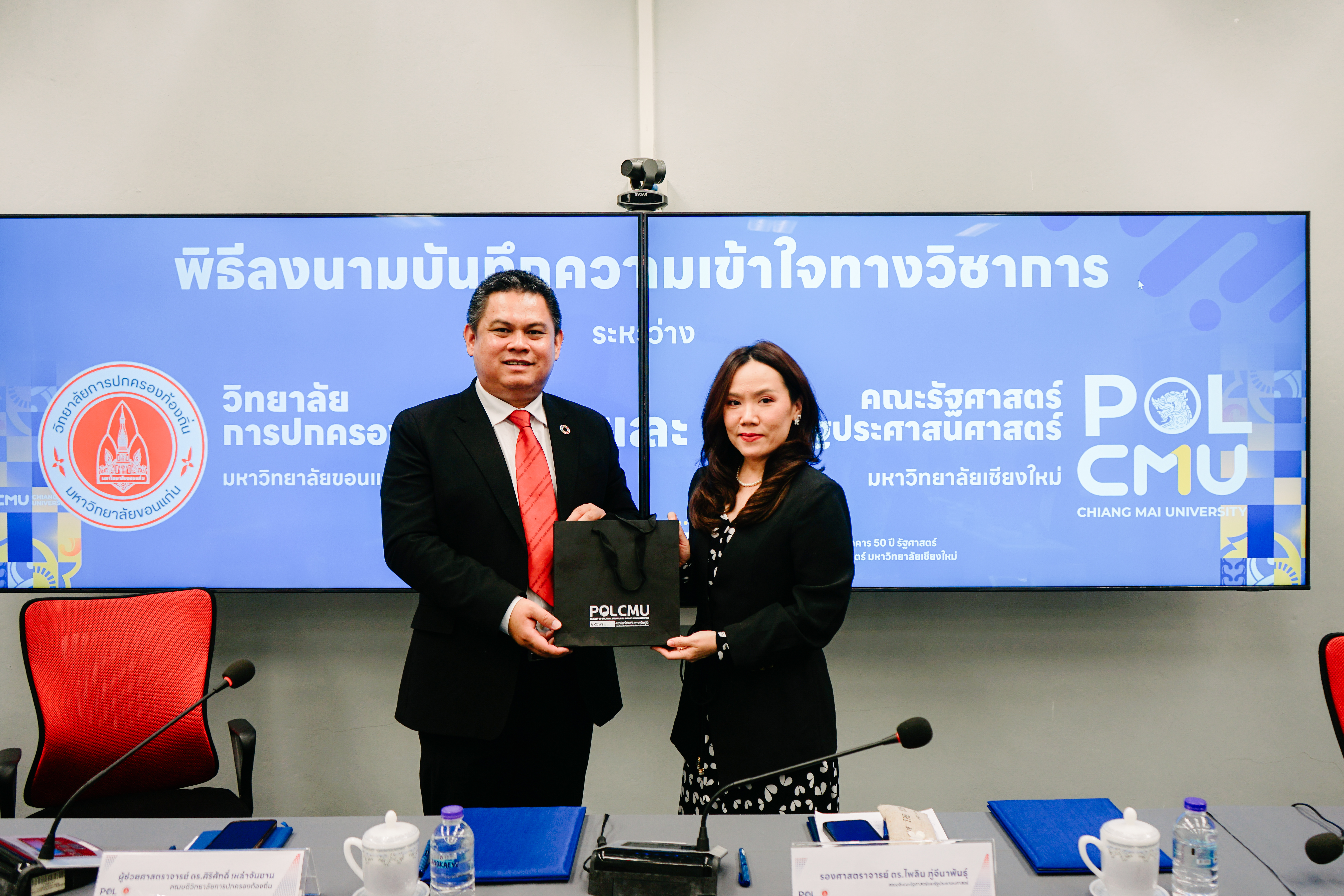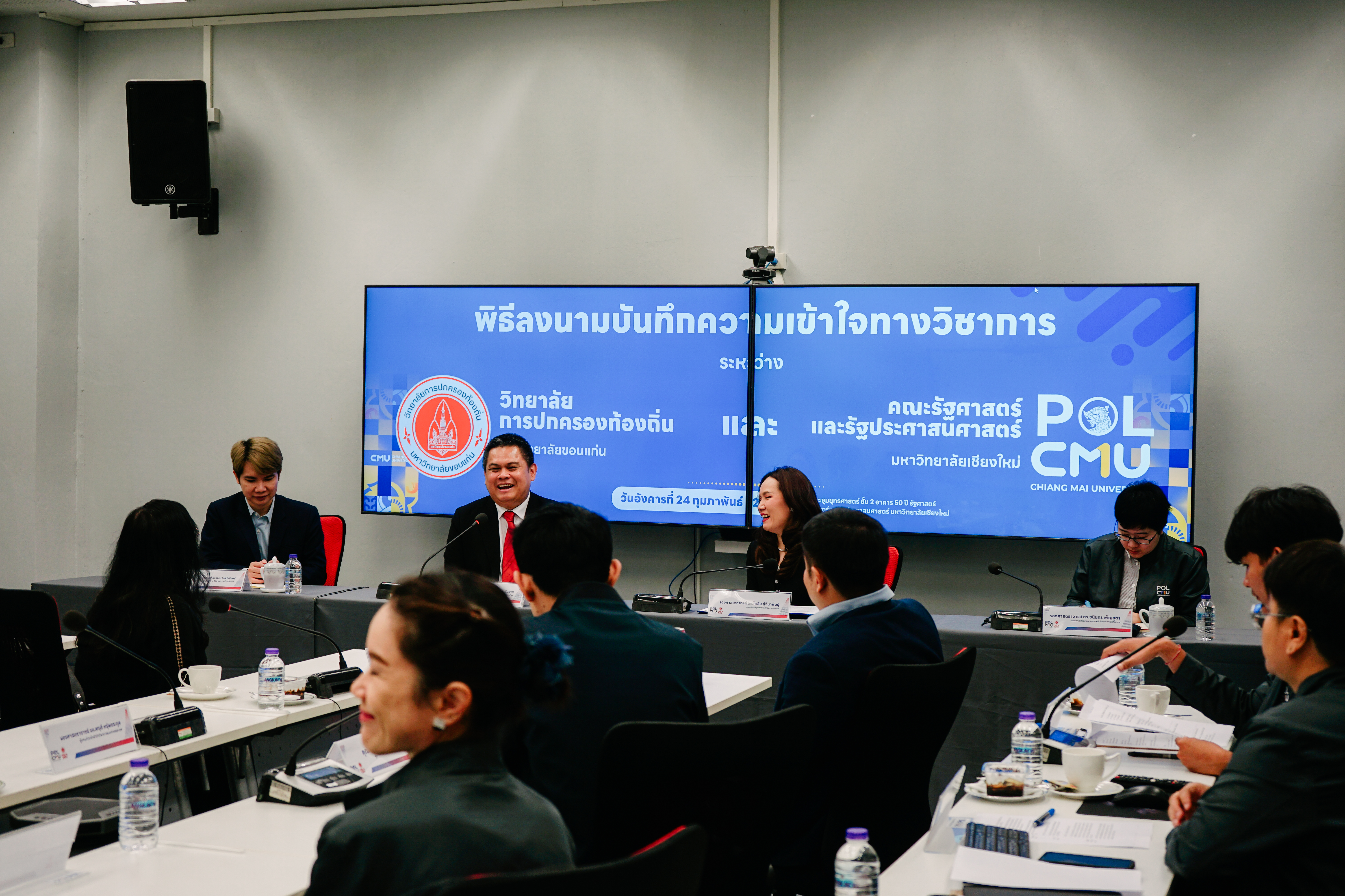 เมื่อวันที่ 24 กุมภาพันธ์ 2569 คณะรัฐศาสตร์และรัฐประศาสนศาสตร์ มหาวิทยาลัยเชียงใหม่ นำโดย รองศาสตราจารย์ ดร.ไพลิน ภู่จีนาพันธุ์ คณบดีคณะรัฐศาสตร์และรัฐประศาสนศาสตร์ ได้ร่วมลงนามบันทึกความเข้าใจทางวิชาการ (MOU) กับวิทยาลัยการปกครองท้องถิ่น มหาวิทยาลัยขอนแก่น นำโดย ผู้ช่วยศาสตราจารย์ ดร.ศิริศักดิ์ เหล่าจันทร์ขาม คณบดีวิทยาลัยการปกครองท้องถิ่น พร้อมด้วยคณะผู้บริหาร คณาจารย์ และบุคลากรจากทั้งสองสถาบัน ณ ห้องประชุมยุทธศาสตร์ ชั้น 2 อาคาร 50 ปี คณะรัฐศาสตร์และรัฐประศาสนศาสตร์ มหาวิทยาลัยเชียงใหม่