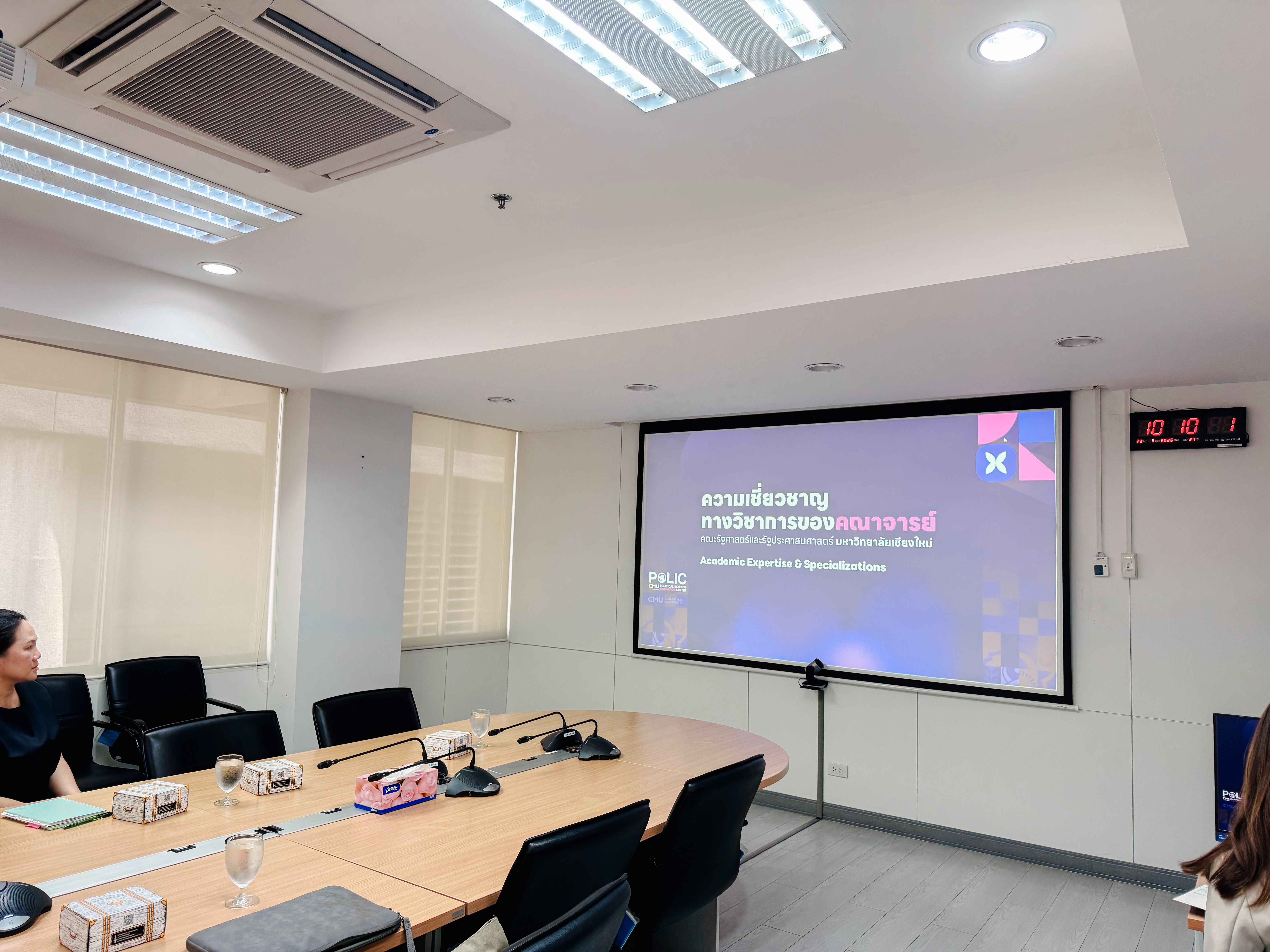 The Political Innovation Center (POLIC CMU) of the Faculty of Political Science and Public Administration, Chiang Mai University, met with the Chulalongkorn University Academic Service Center (Chula Unisearch) on Monday, March 23, 2026, to discuss and exchange academic insights. This meeting aimed to strengthen academic networks and support the development of POLIC CMU’s curricula and services, while fostering external partnerships to ensure high-quality programs that align with target group demands. Both organizations shared extensive experience regarding short-course training development, academic service management, and strategies for sustainable future collaboration.