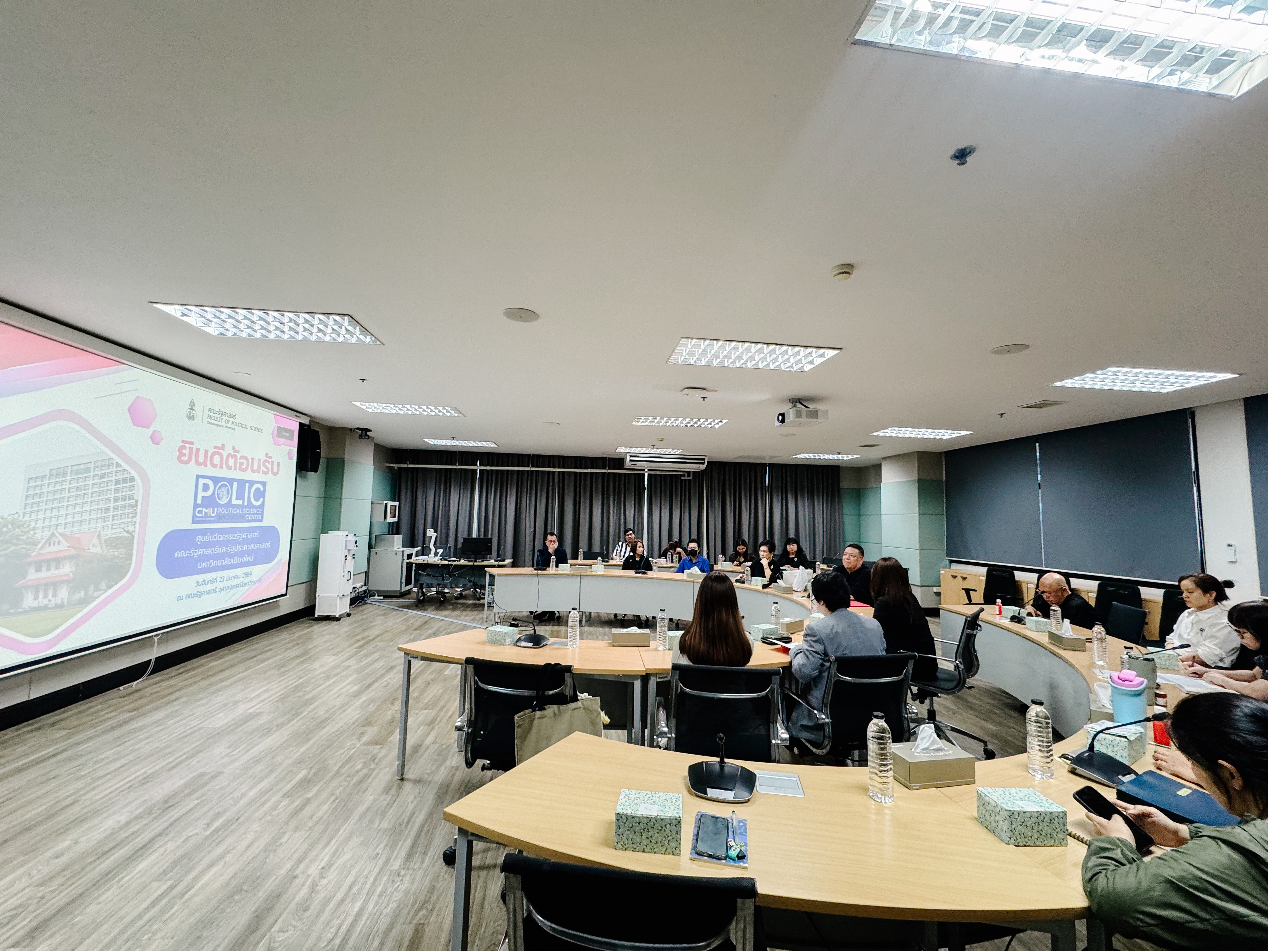 Associate Professor Dr. Pailin Phujeenaphan, the Dean of the Faculty of Political Science and Public Administration at Chiang Mai University, along with the executive team and staff, held a formal meeting to discuss academic collaboration with the Faculty of Political Science at Chulalongkorn University, represented by Associate Professor Dr. Pakorn Siriprakob and his executive team. On March 23, 2026, at the Kasem Utayanin Meeting Room (216), both parties explored initiatives to promote joint course development, organize experiential learning activities, and implement integrated teaching and learning models under the "MC²: MC Squared" tripartite university cooperation framework. The discussion also served as a platform to exchange valuable insights on strategic approaches for future academic synergy between the two institutions. 📚✨