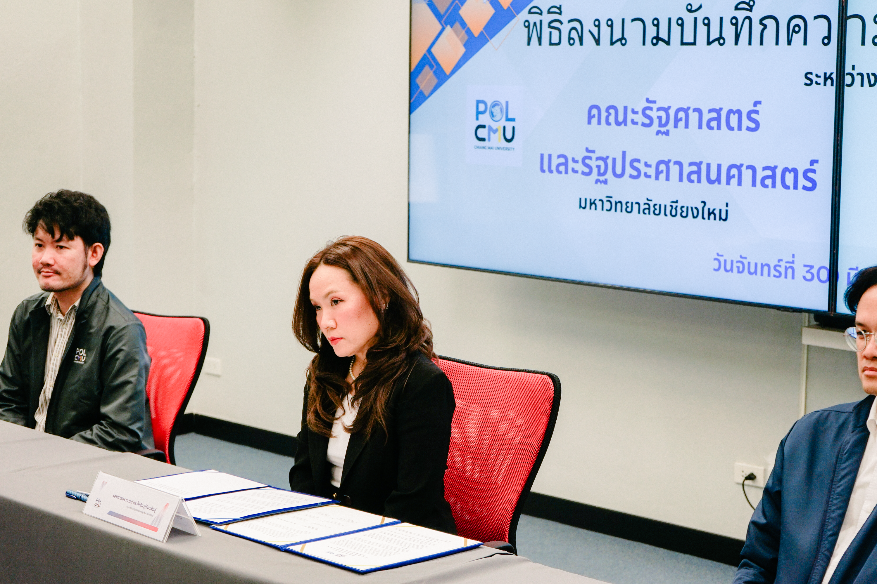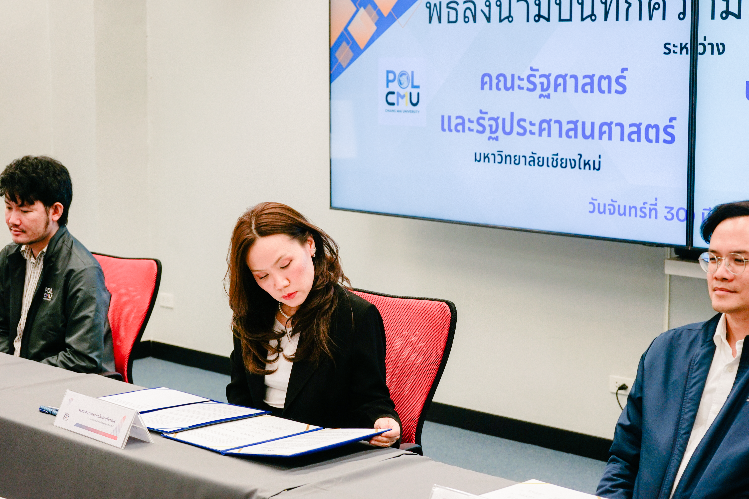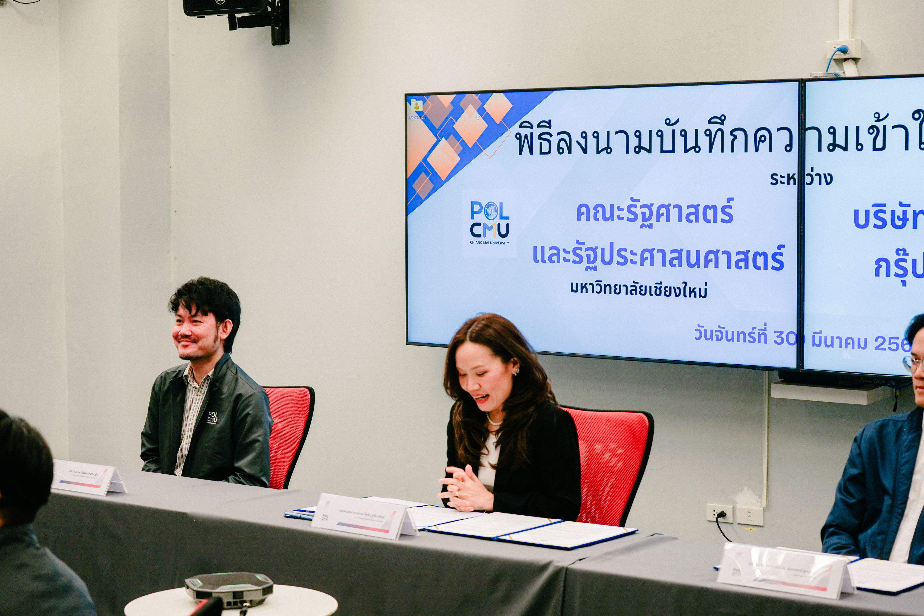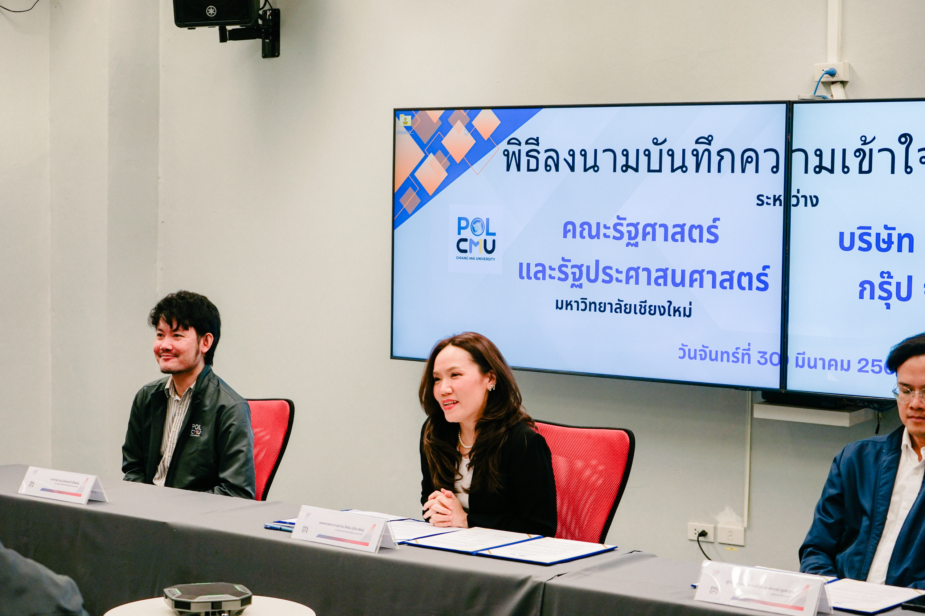 คณะรัฐศาสตร์ฯ มช. ลงนามความร่วมมือทางวิชาการ กับ บริษัท เซ็น คอร์ปอเรชั่น กรุ๊ป จำกัด (มหาชน) ยกระดับการพัฒนาทรัพยากรมนุษย์และองค์การเมื่อวันที่ 30 มีนาคม 2569 คณะรัฐศาสตร์และรัฐประศาสนศาสตร์ มหาวิทยาลัยเชียงใหม่ โดยรองศาสตราจารย์ ดร.ไพลิน ภู่จีนาพันธุ์ คณบดีคณะรัฐศาสตร์และรัฐประศาสนศาสตร์ มหาวิทยาลัยเชียงใหม่ ร่วมลงนามบันทึกข้อตกลงความร่วมมือทางวิชาการ กับ บริษัท เซ็น คอร์ปอเรชั่น กรุ๊ป จำกัด (มหาชน)