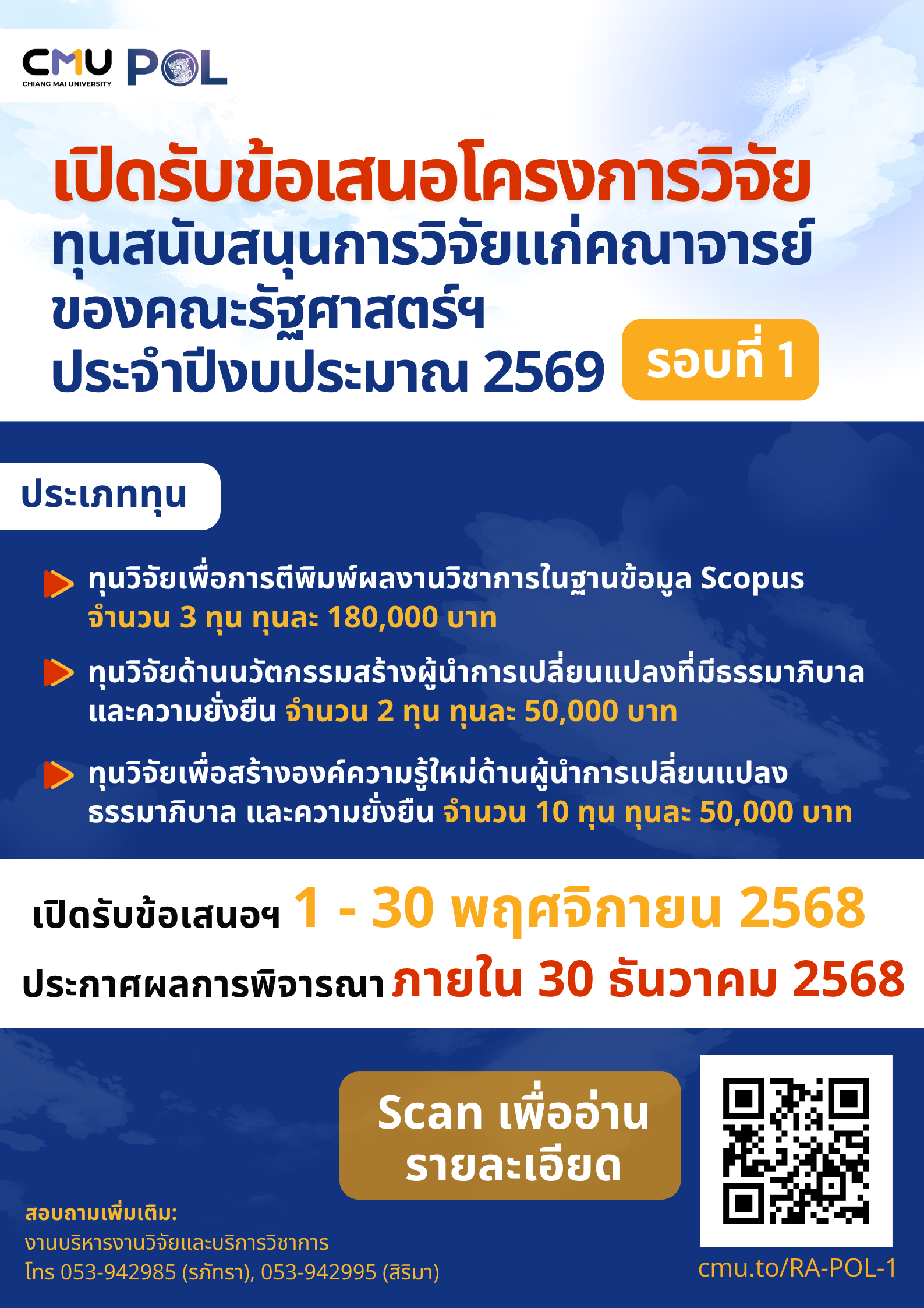 ส่งข้อเสนอโครงการวิจัยได้ที่ https://cmu.to/FORM-RA01